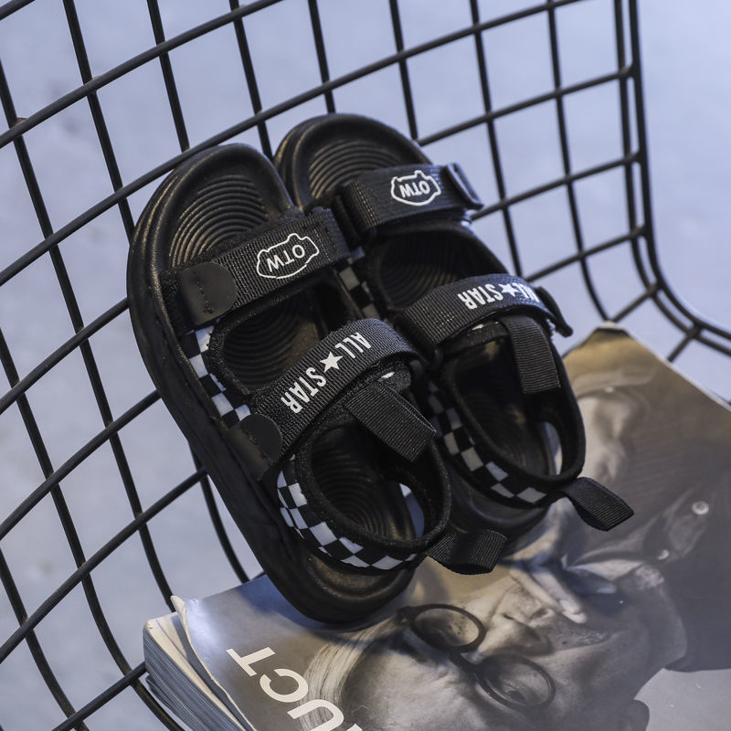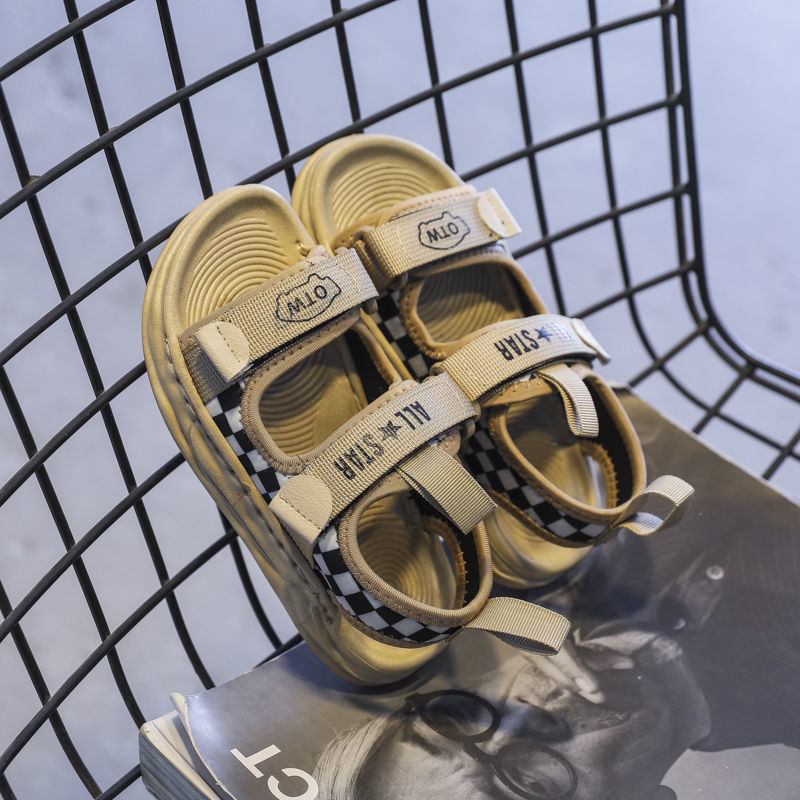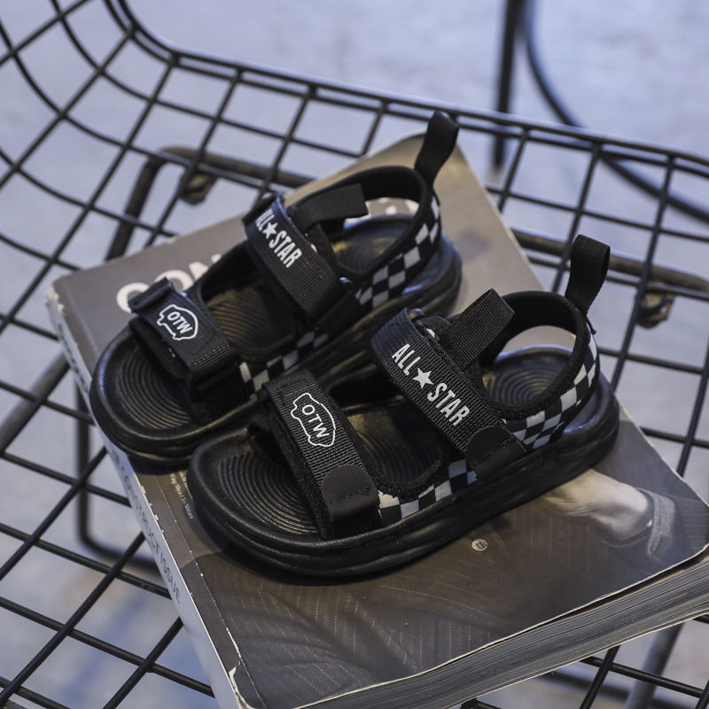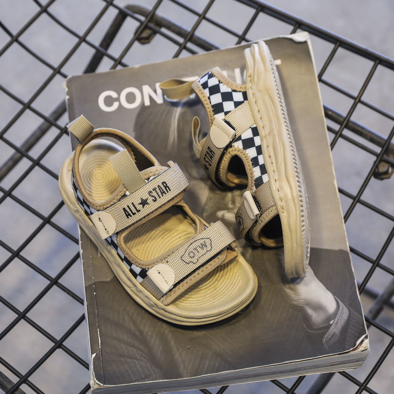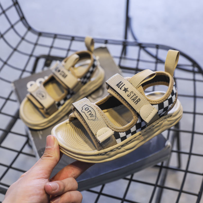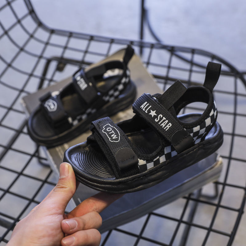 【2022夏季新款】儿童运动凉鞋,男童棋盘格露趾沙滩鞋,中大童防滑休闲鞋子