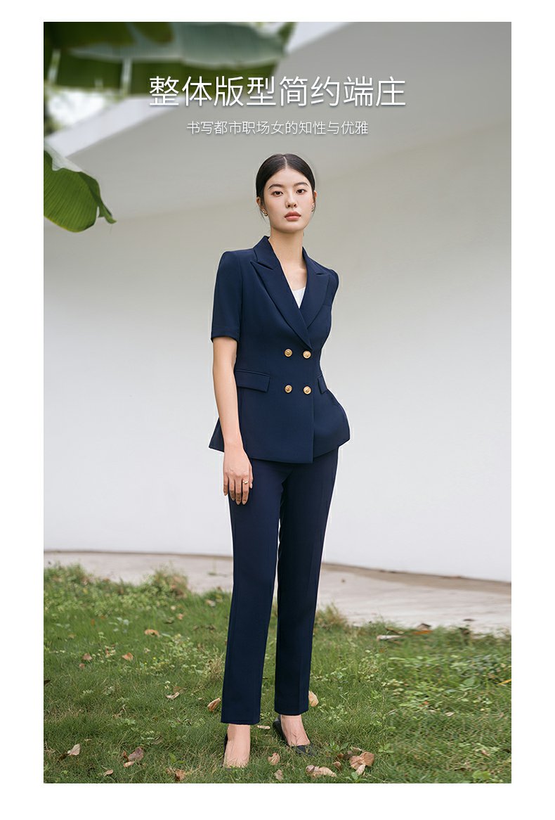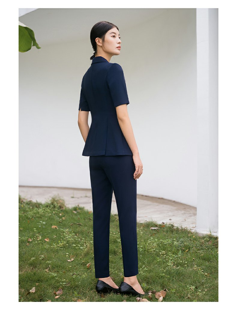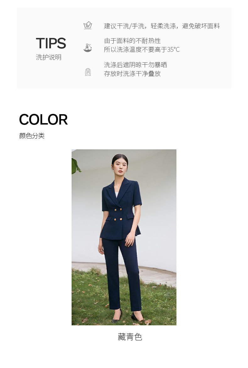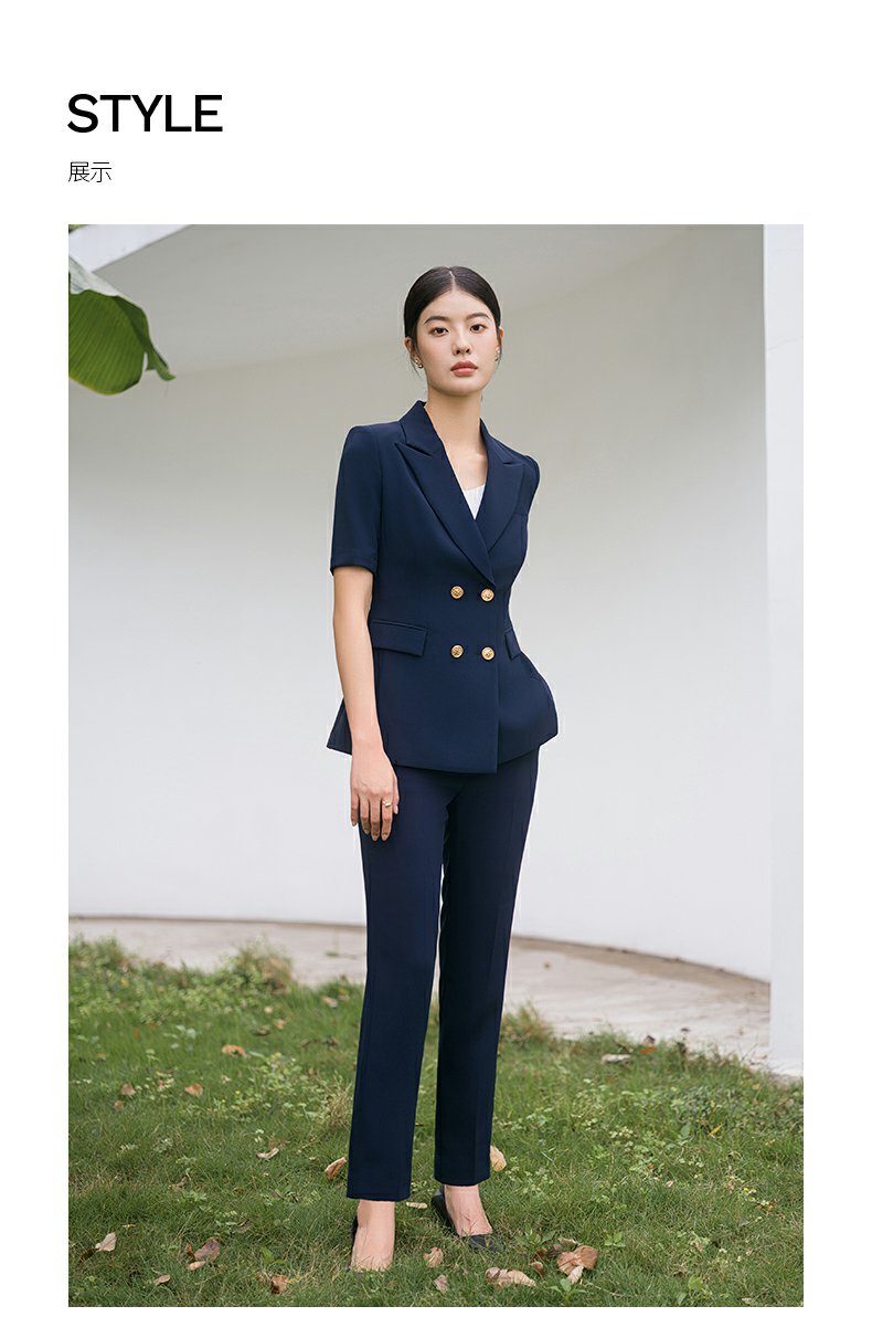 IWY/高端藏青色西装套装短袖职业西付外套商务干练微喇裤装两件套C13208+P33208