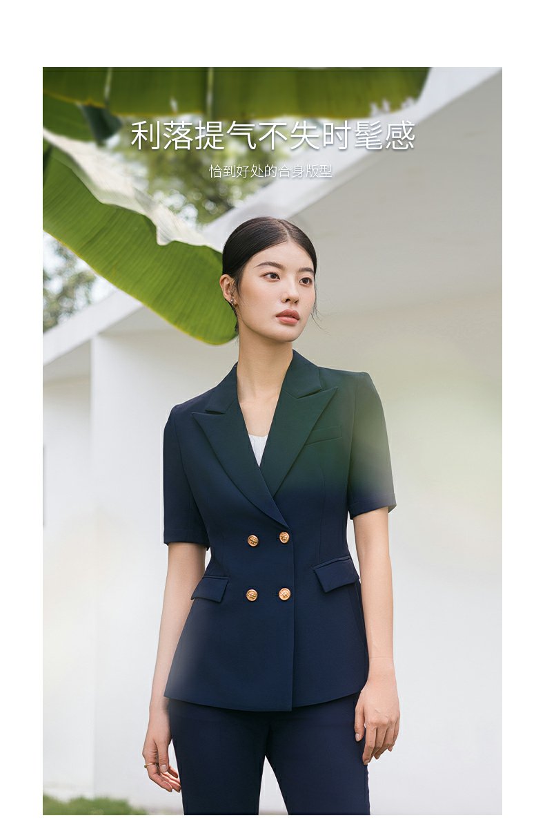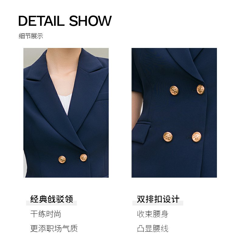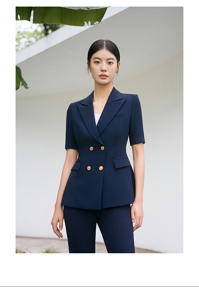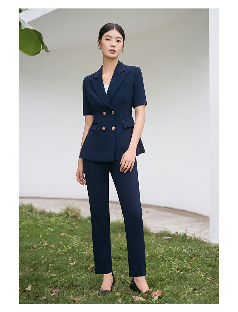 IWY/高端藏青色西装套装短袖职业西付外套商务干练微喇裤装两件套C13208+P33208