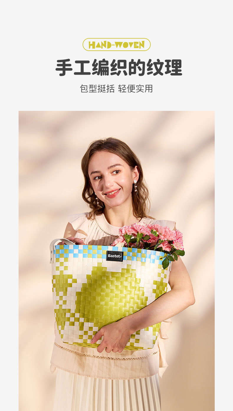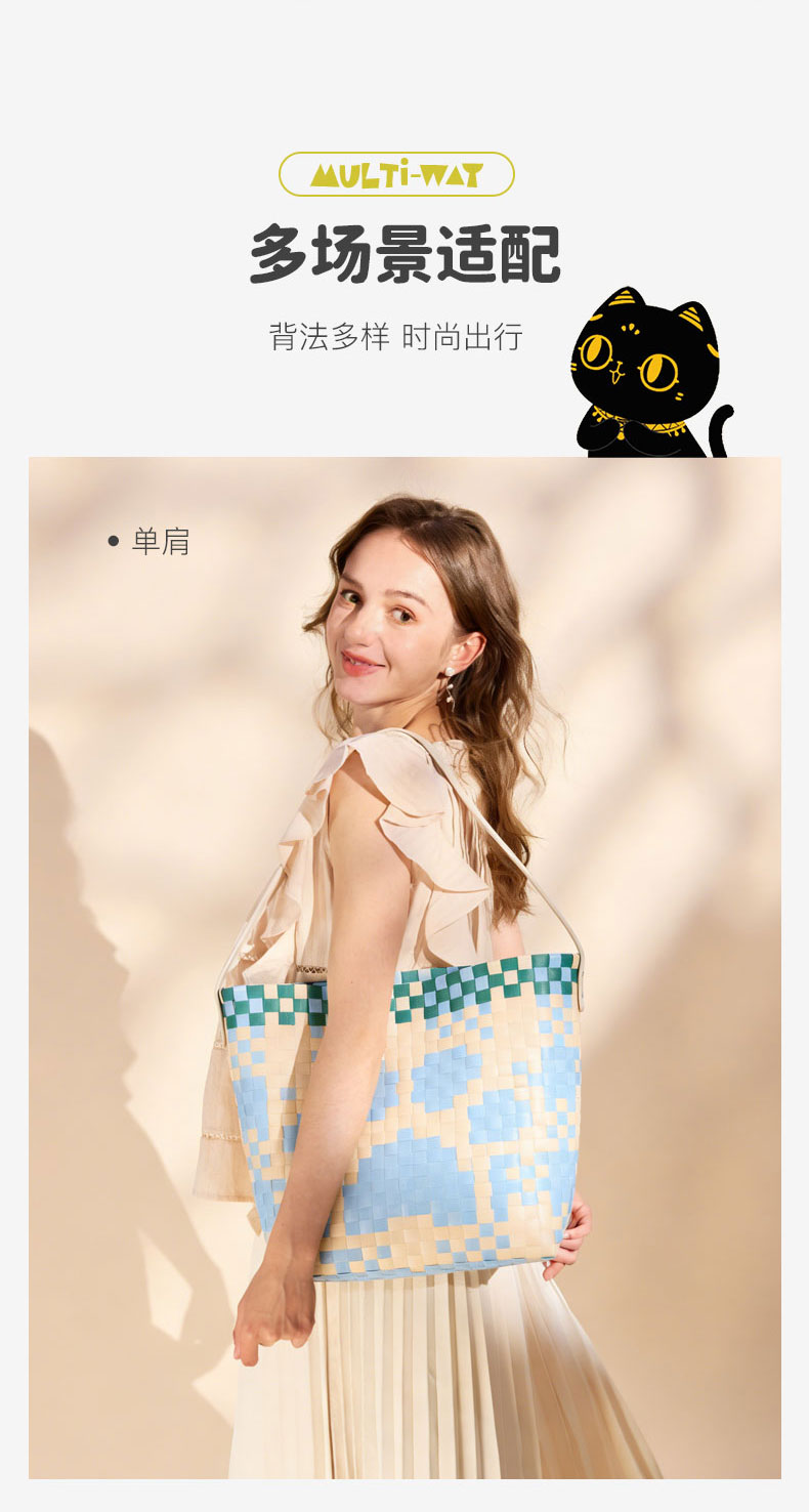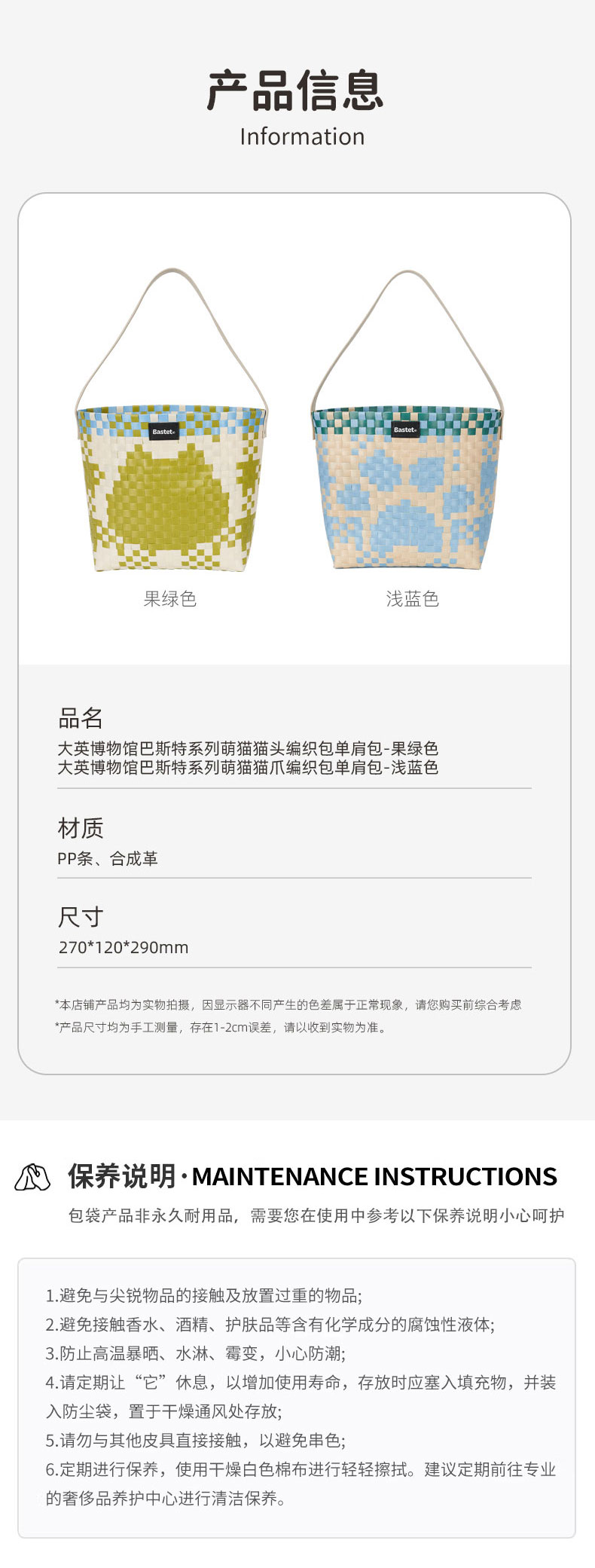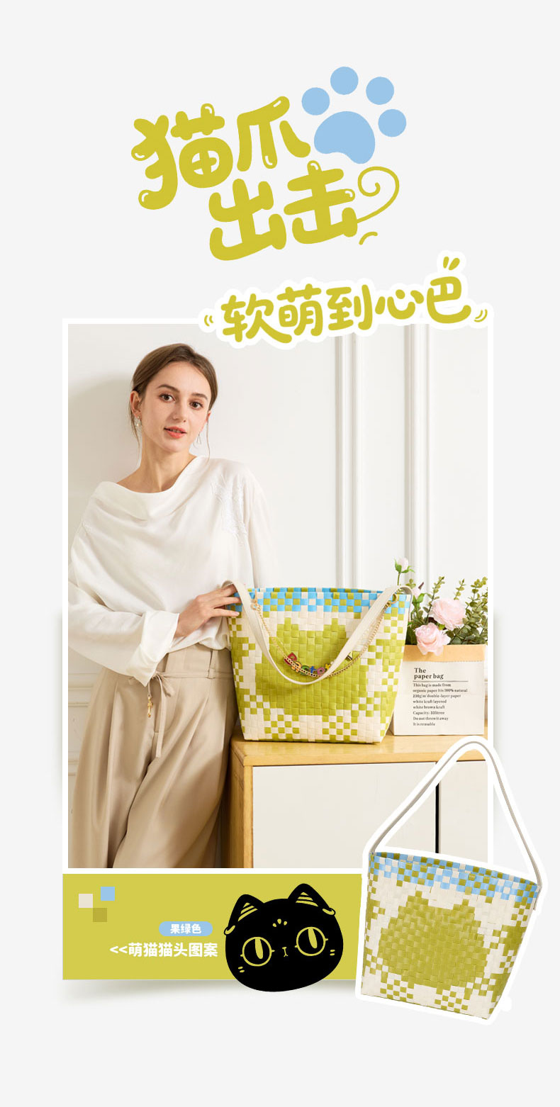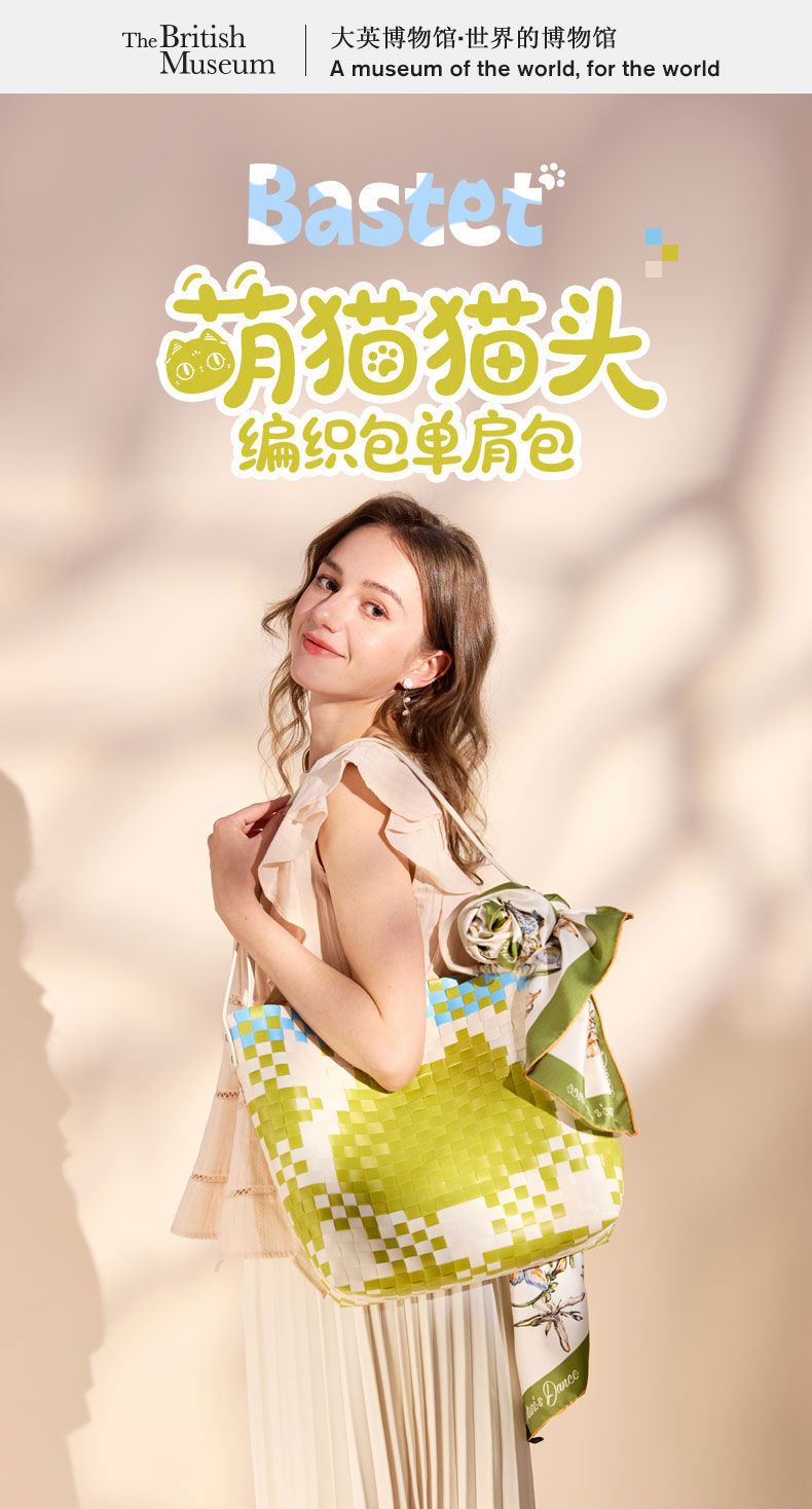 大英博物馆巴斯特系列萌猫猫头编织包单肩包-果绿色 浅蓝色
