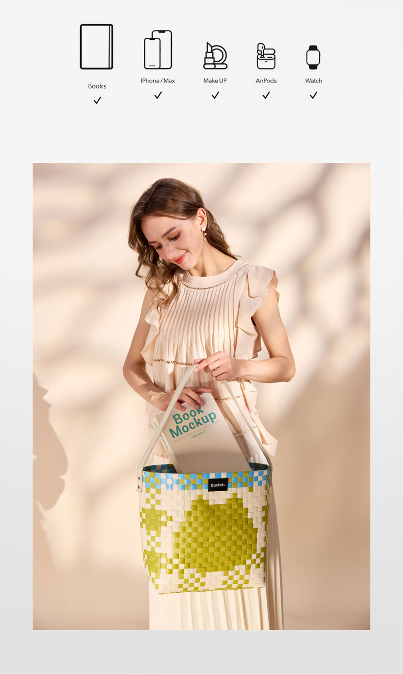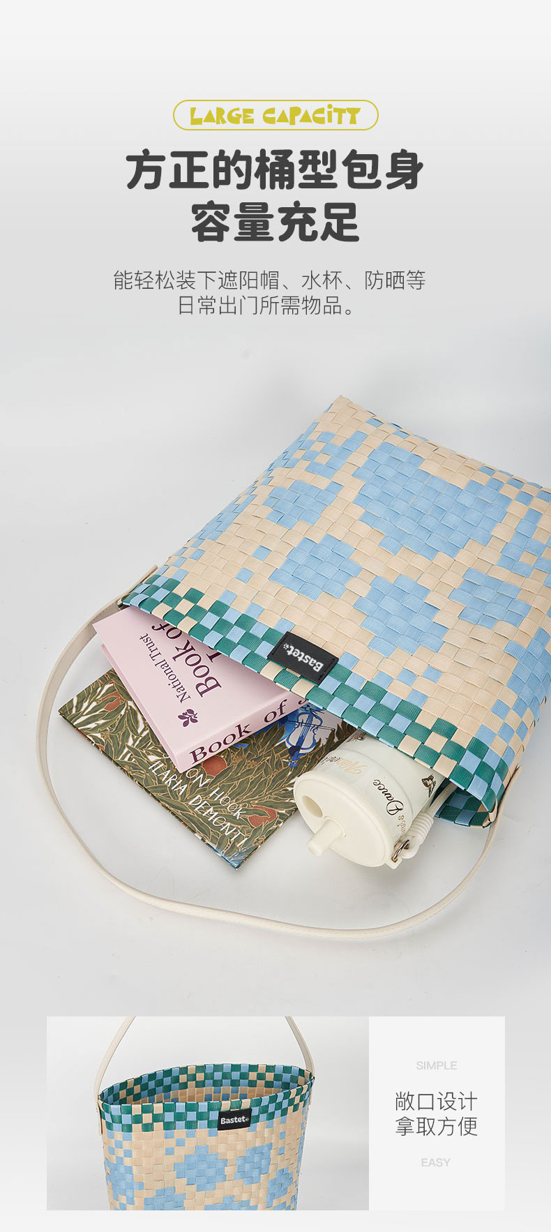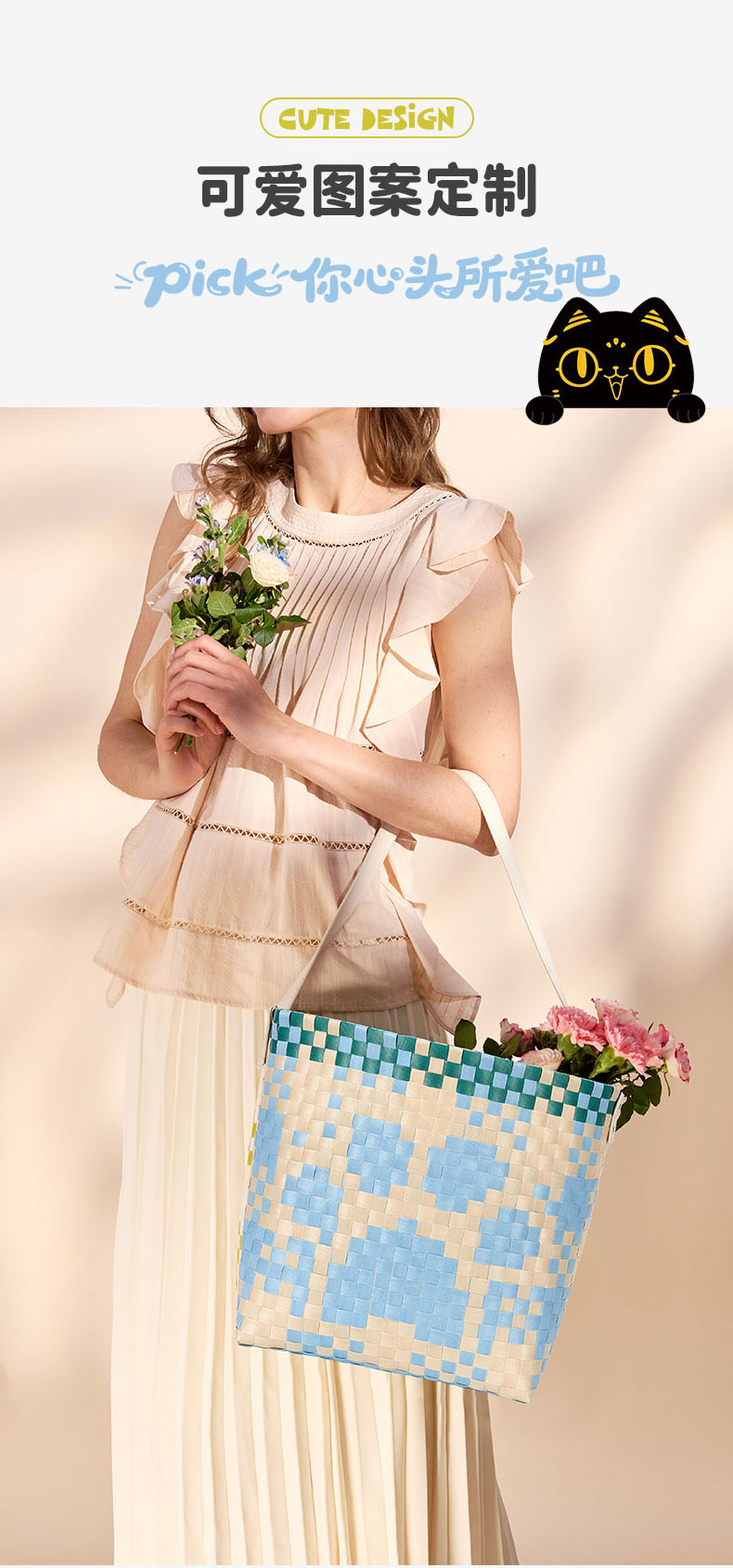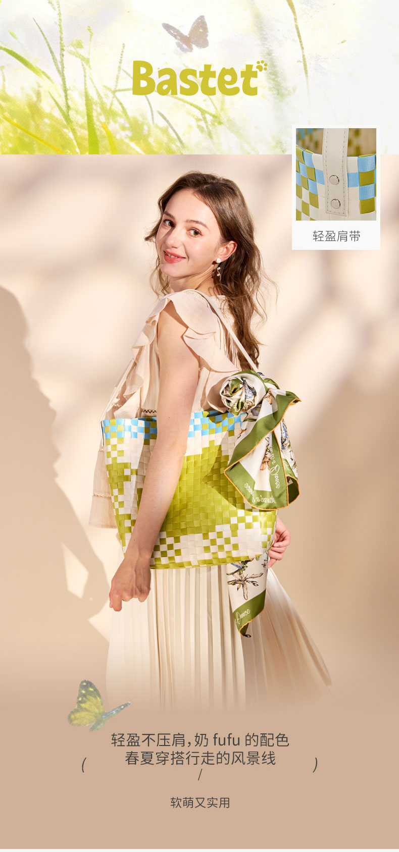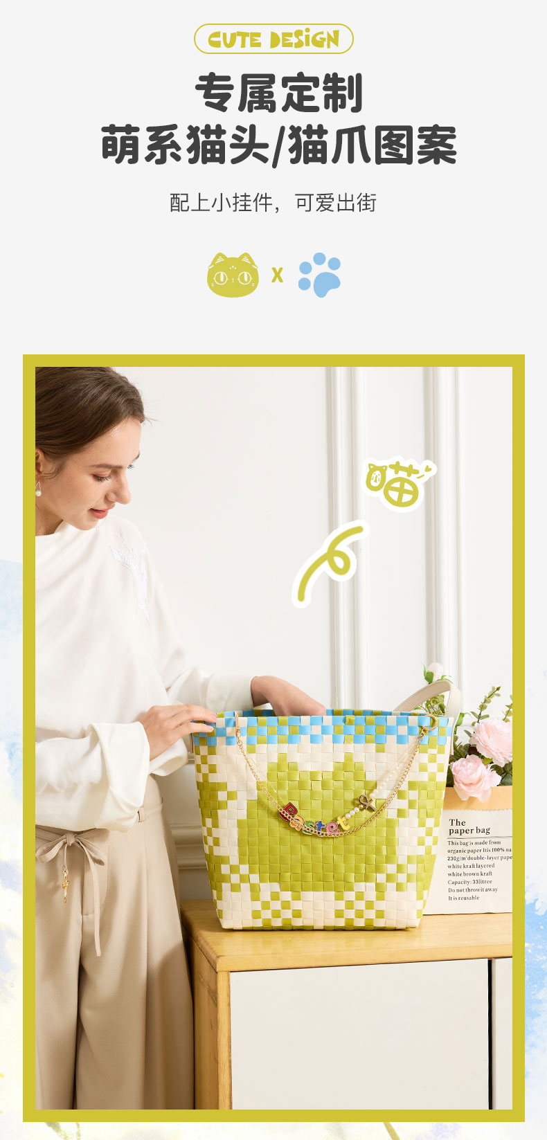大英博物馆巴斯特系列萌猫猫头编织包单肩包-果绿色 浅蓝色