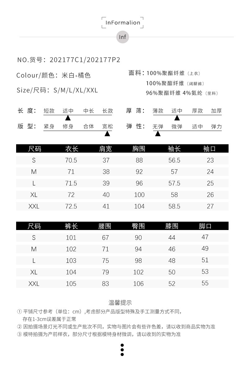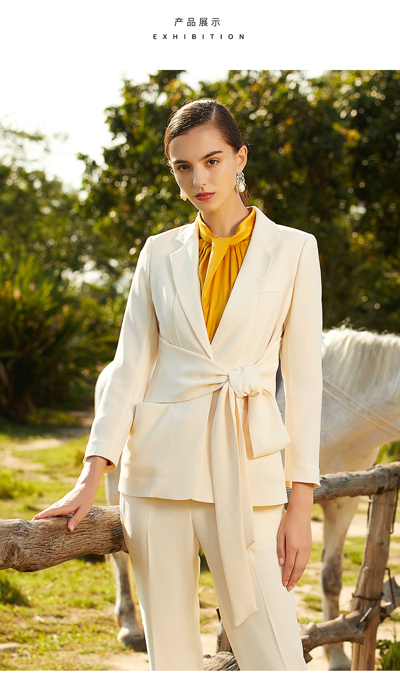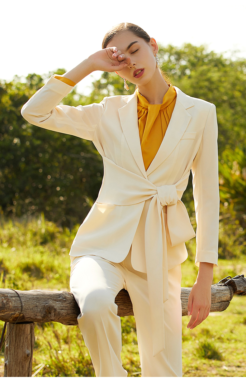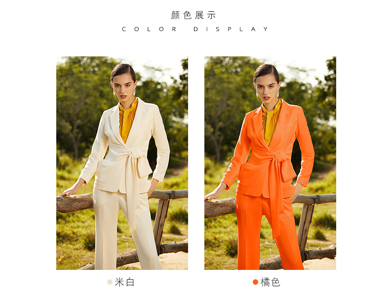IWY/米白色橘红色长袖西装长裤套装77CP1