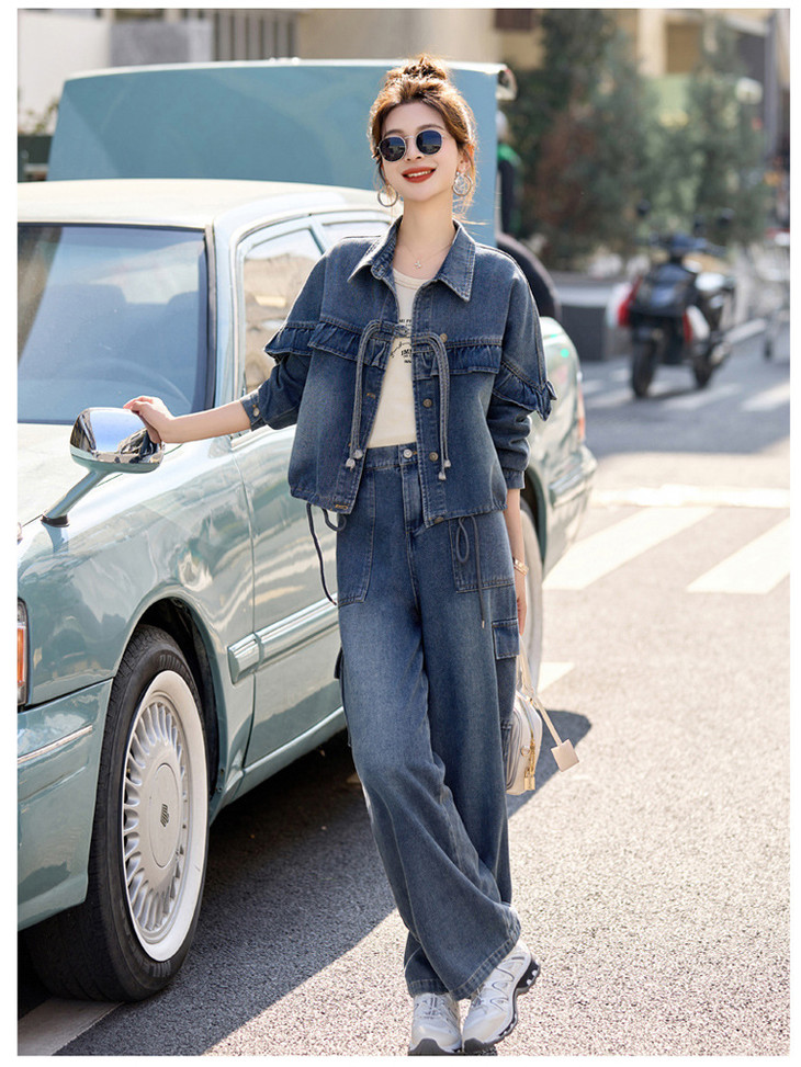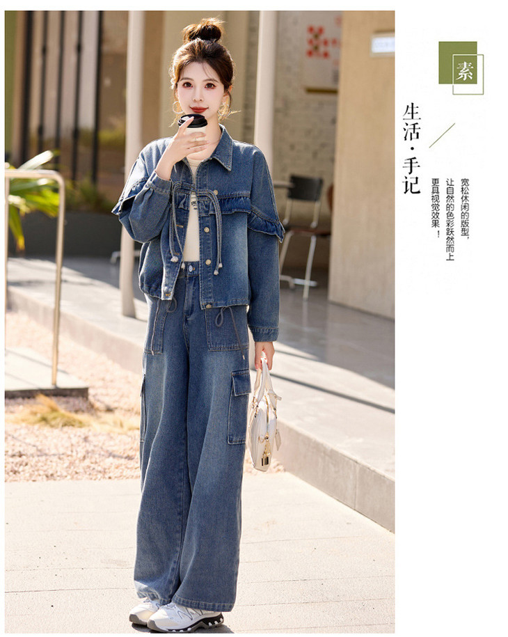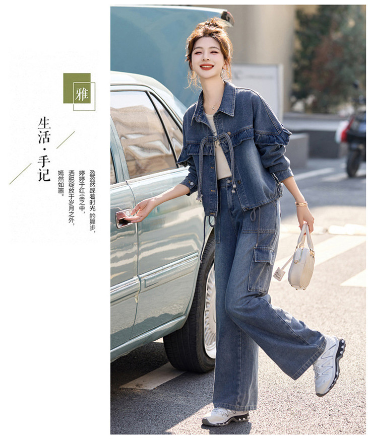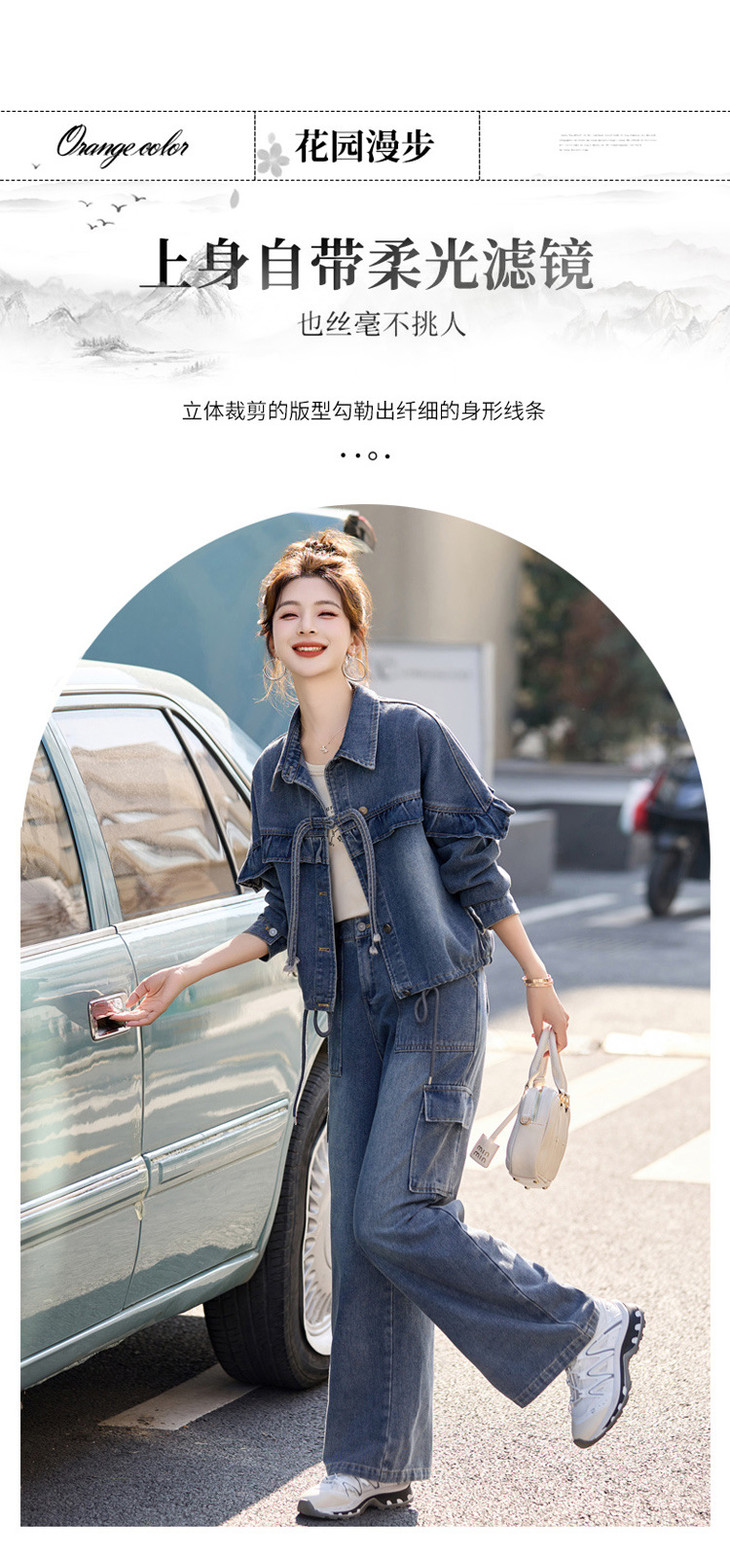牛仔套装春款气质时尚简约大方新中式风阔腿裤两件套HR-WXG969