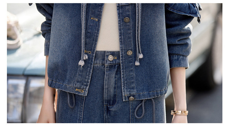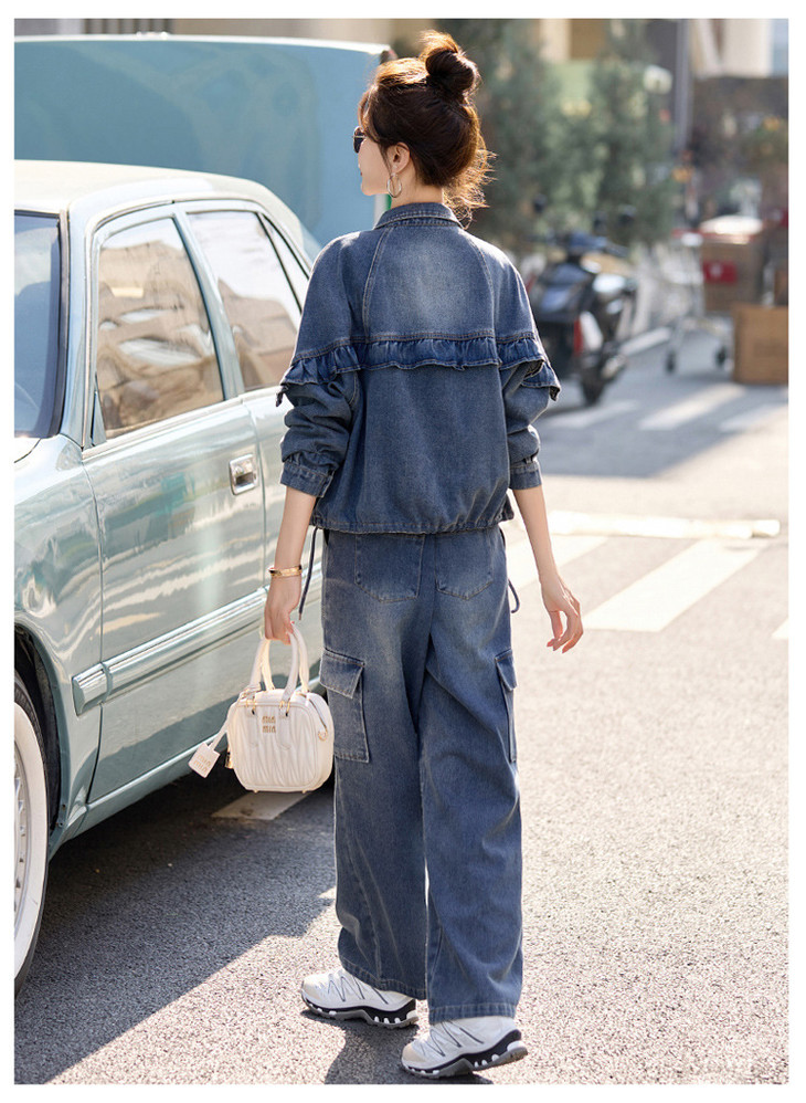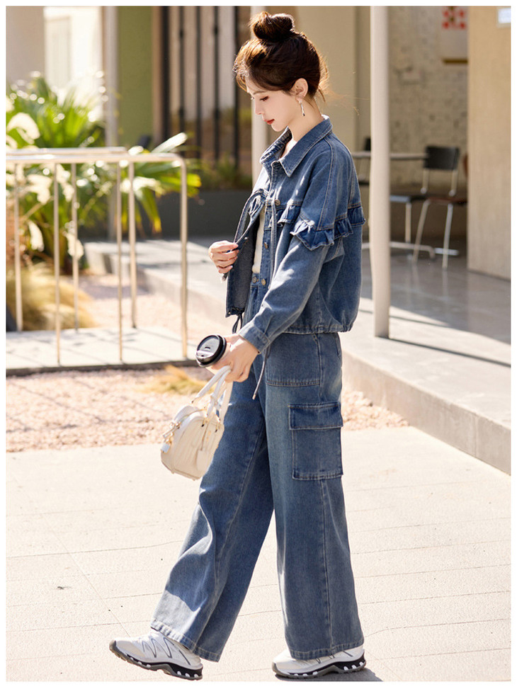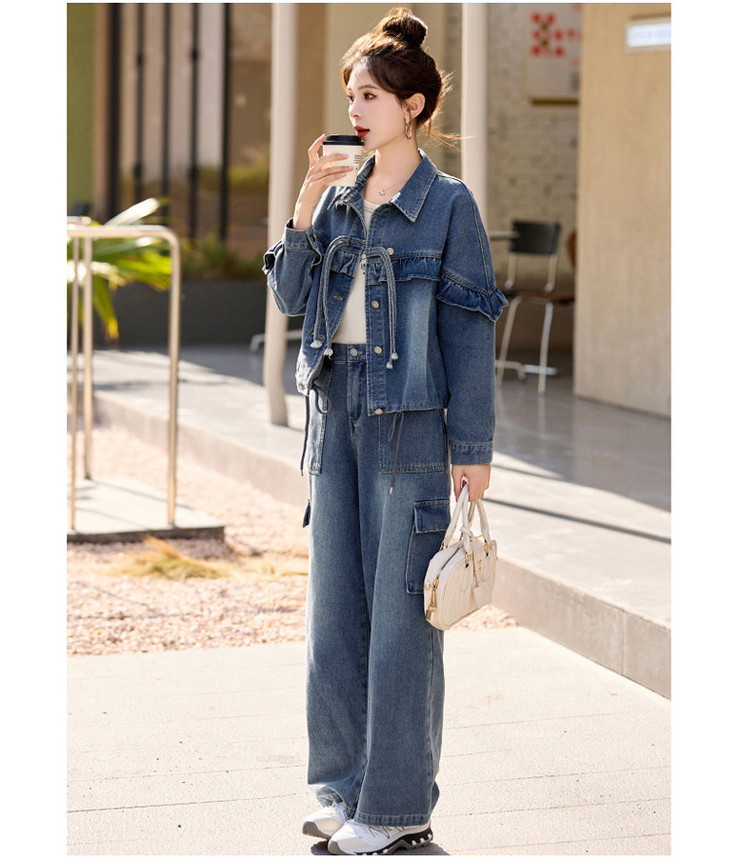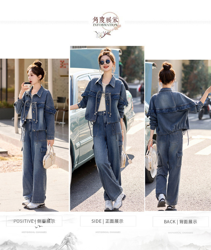牛仔套装春款气质时尚简约大方新中式风阔腿裤两件套HR-WXG969