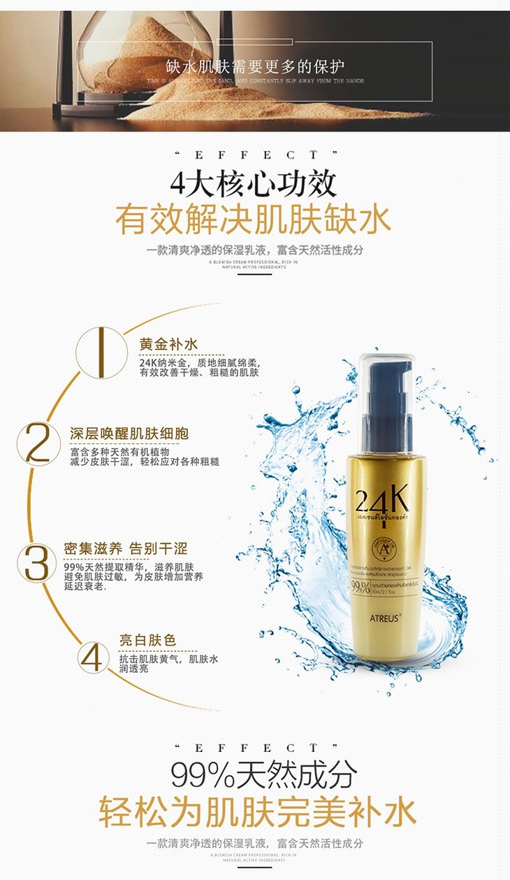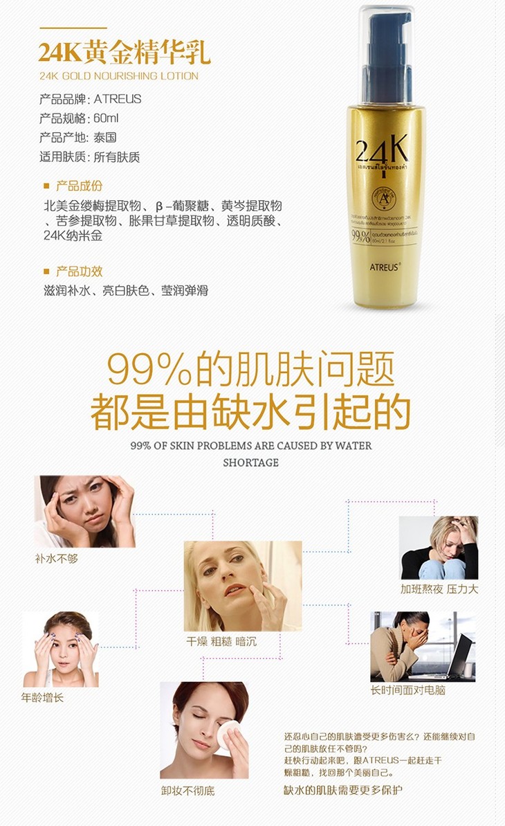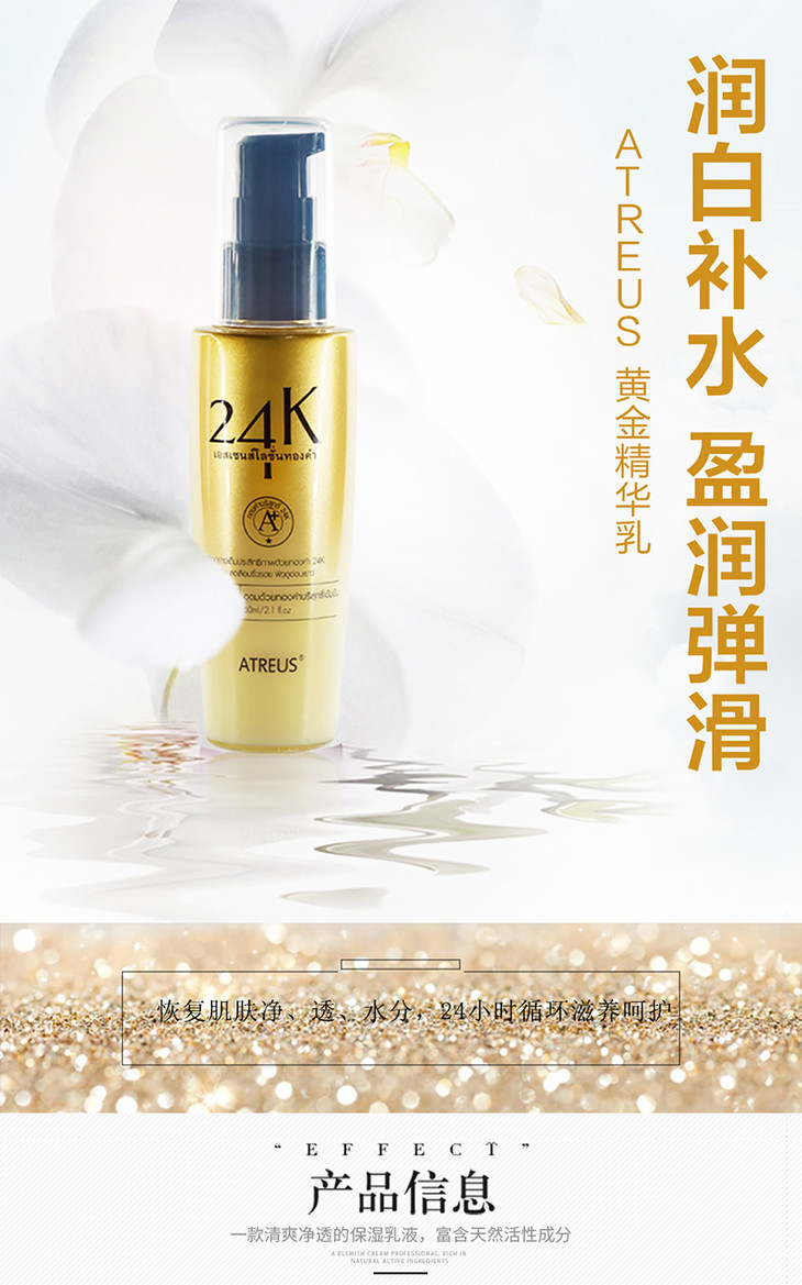 【香港直邮】泰国ATREUS 24K黄金乳液精华乳补水保湿AT收毛孔提亮肤色润肤乳