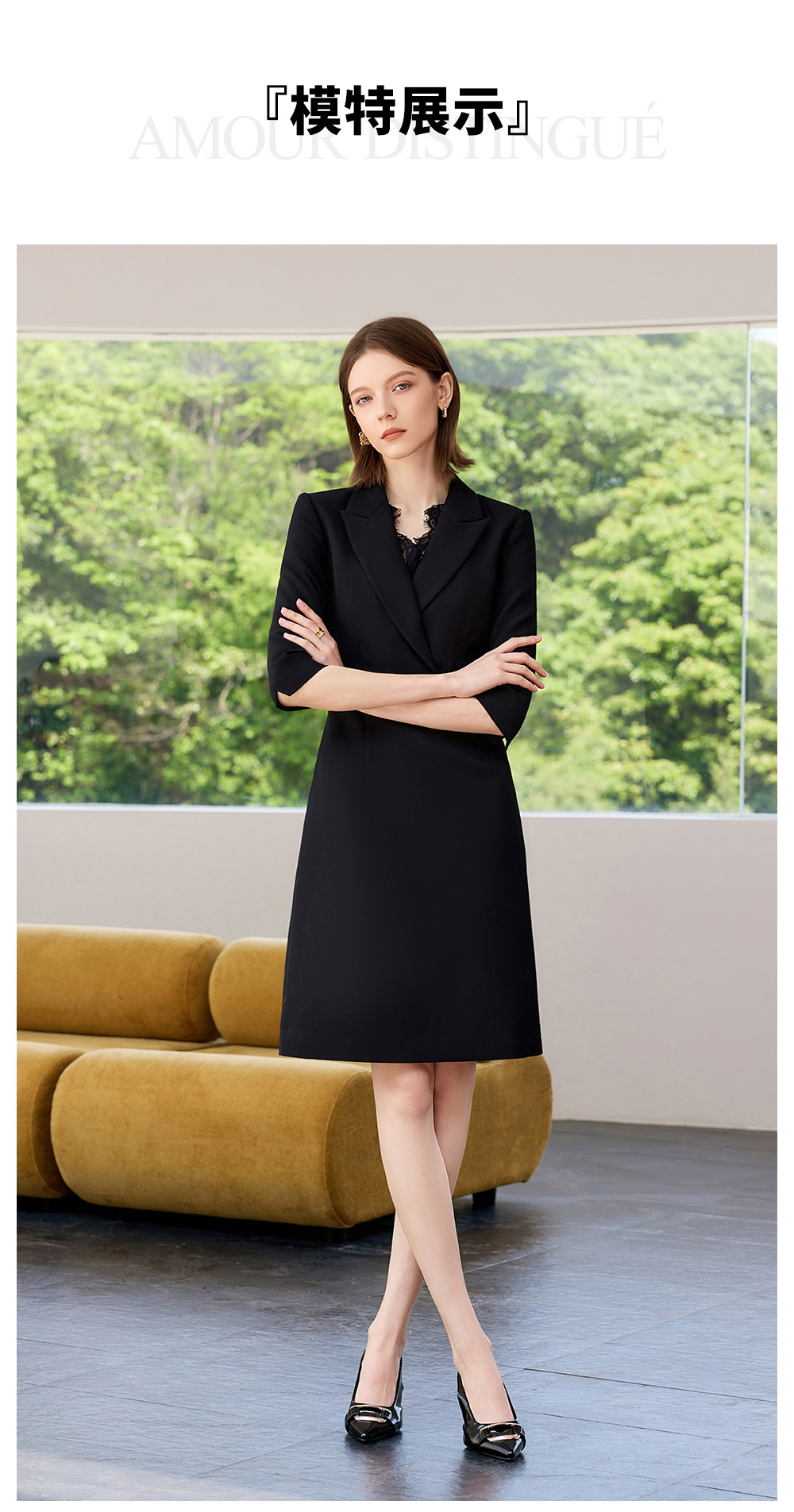 IWY/黑色西装连衣裙女新款职业套裙收腰显瘦包臀小黑裙Q1359