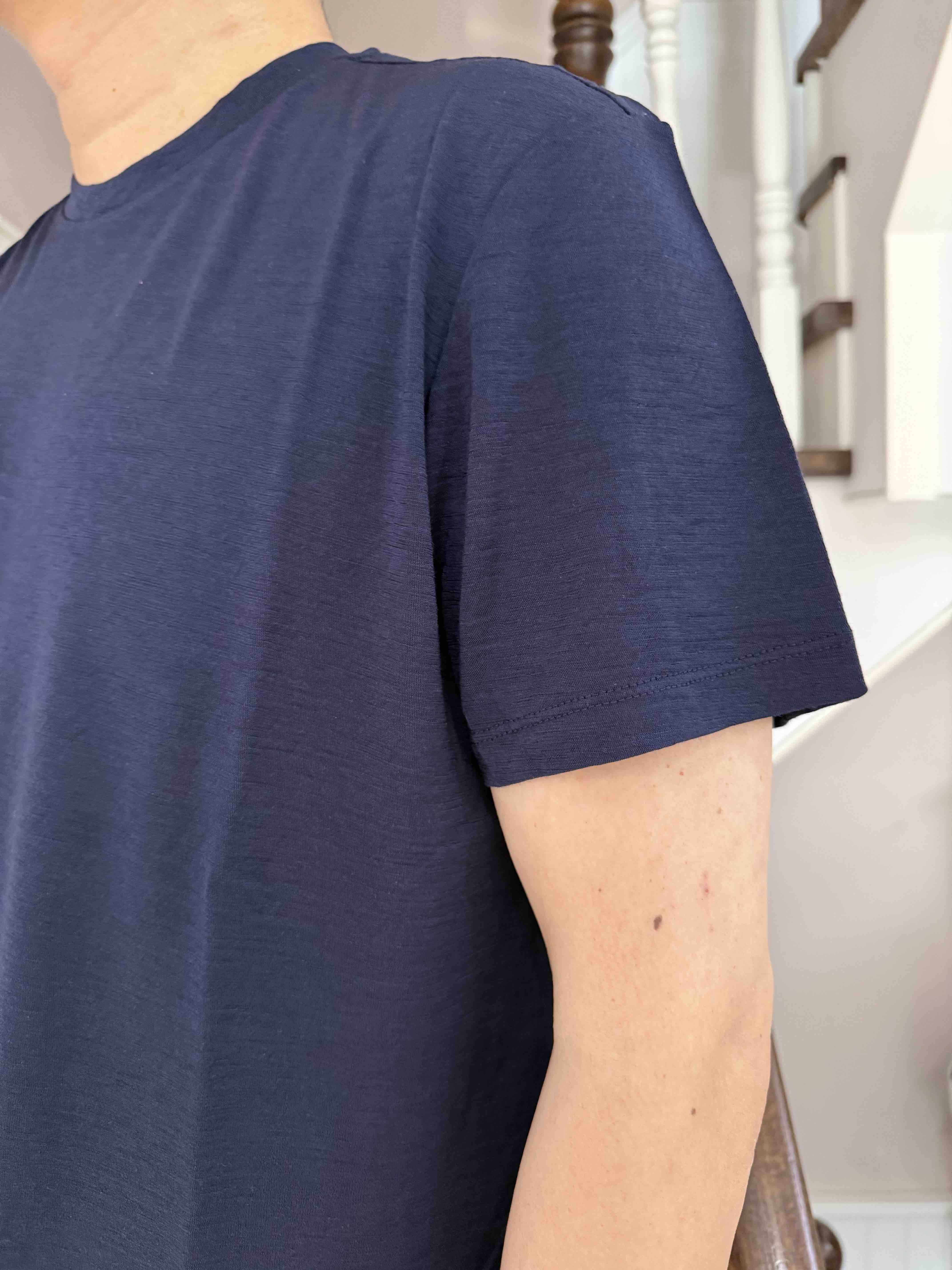 雾蓝色实拍~高级感十足,自带高级的丝光质感,一件会呼吸的羊毛短袖夏天穿真的是享受!