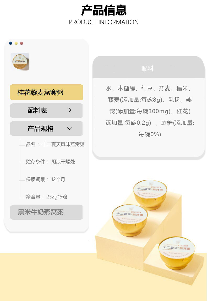 【发出后不支持拦截】十二夏天 桂花藜麦燕窝粥 1512g