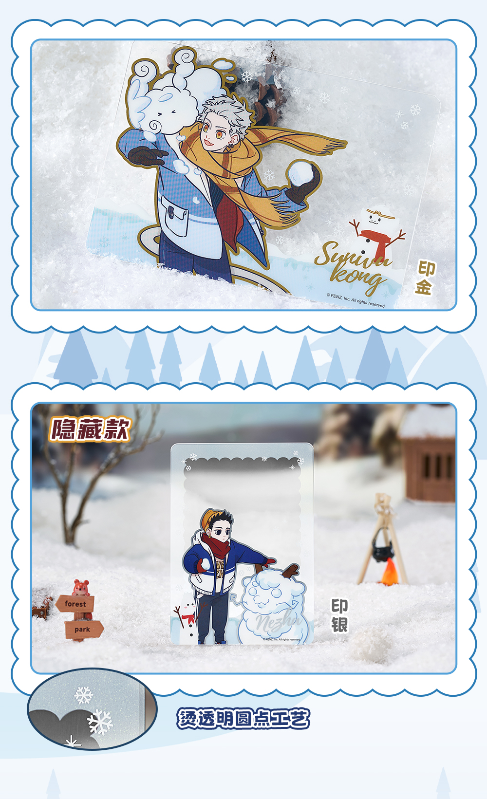 《非人哉官方店》暖冬奇趣系列PET透卡盲盒动漫周边雪花元素收藏卡牌