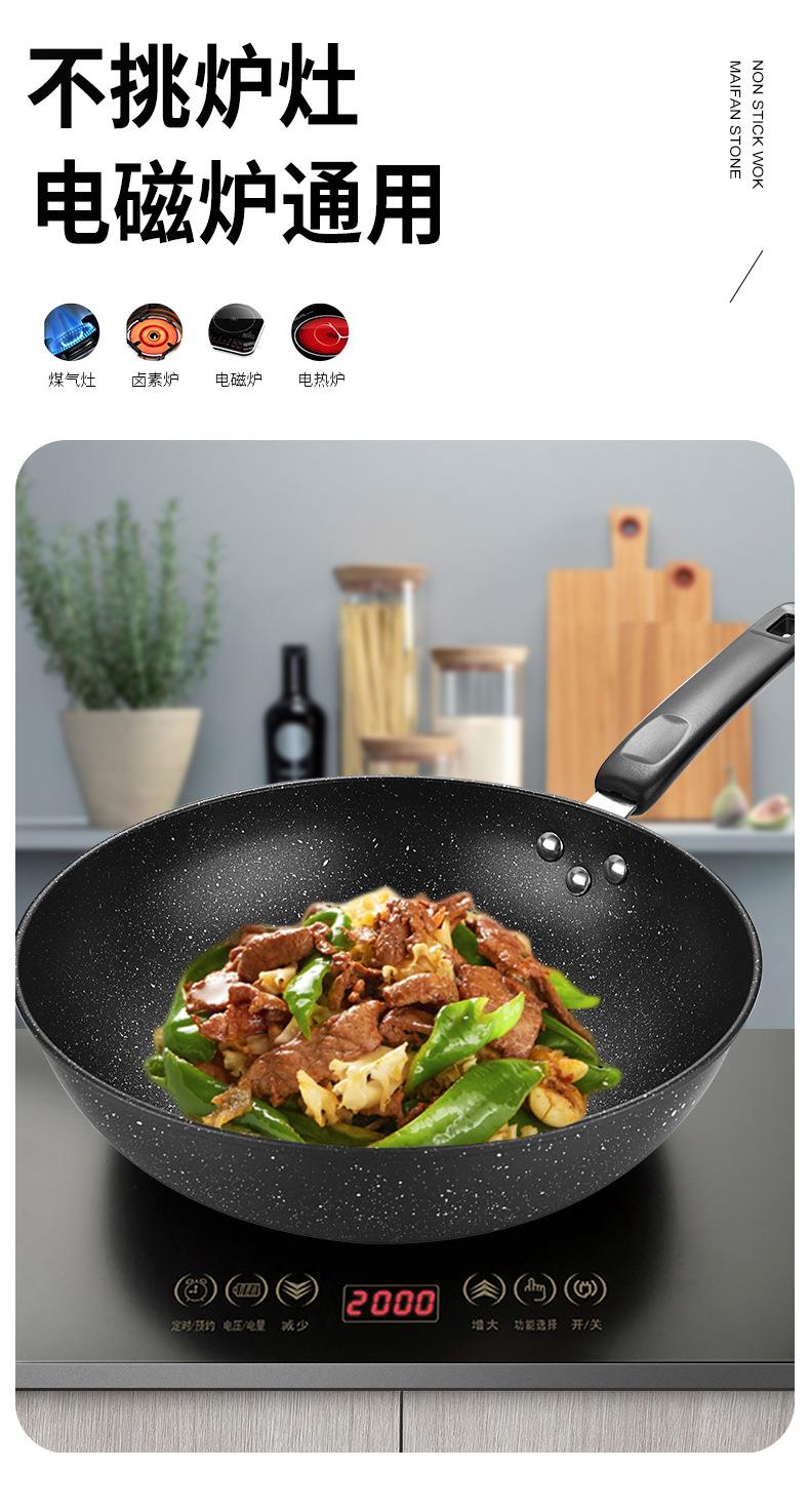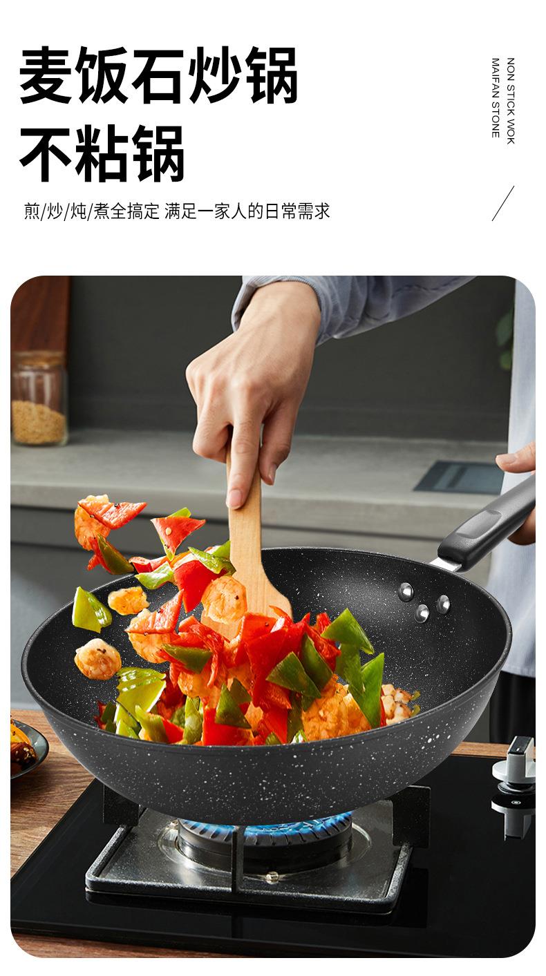 麦饭石不粘锅 无油烟平底炒锅通用礼品套装电磁炉 炒菜锅不沾锅