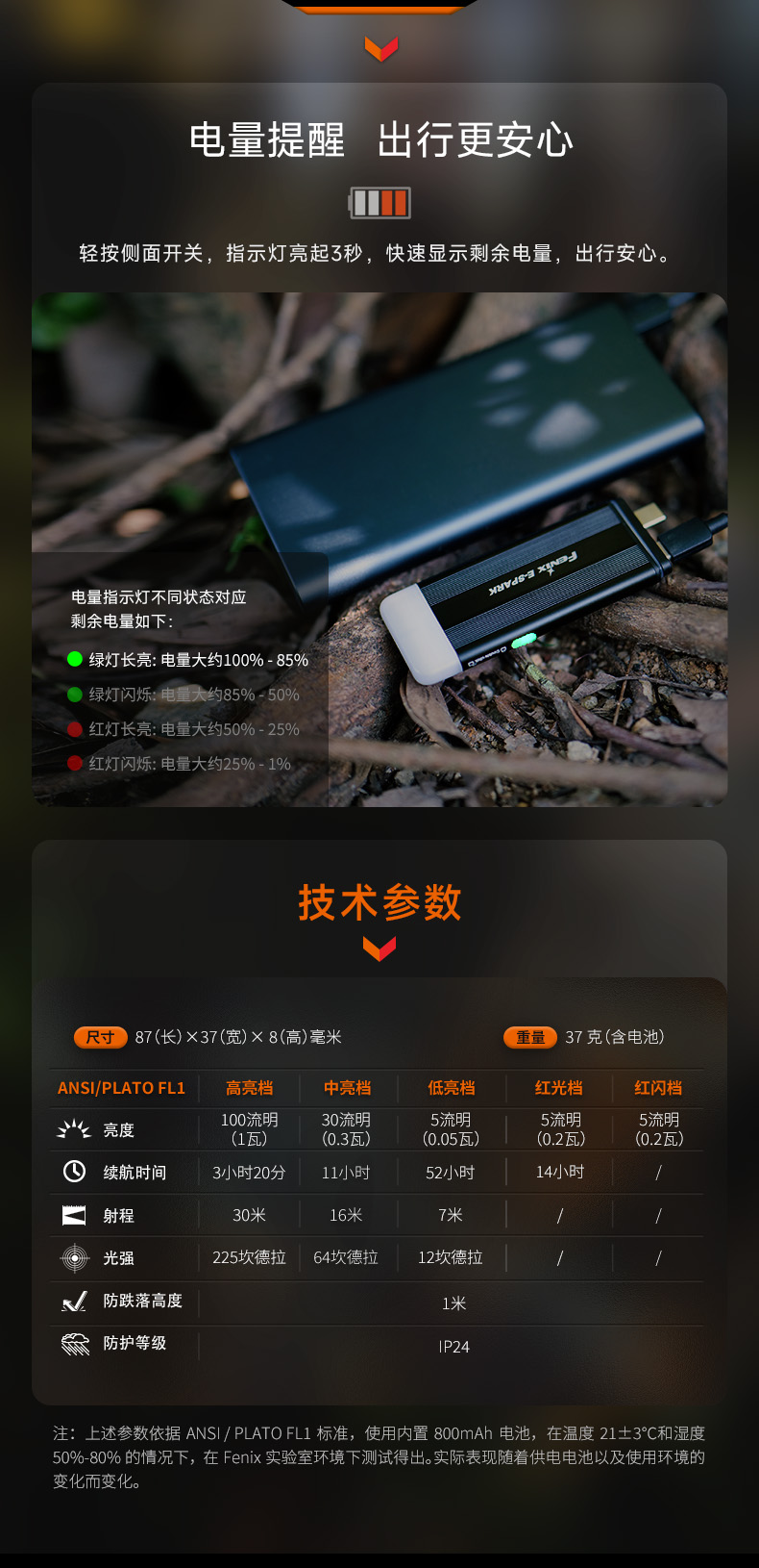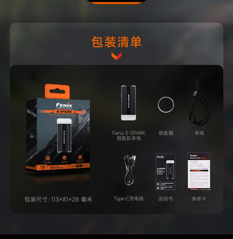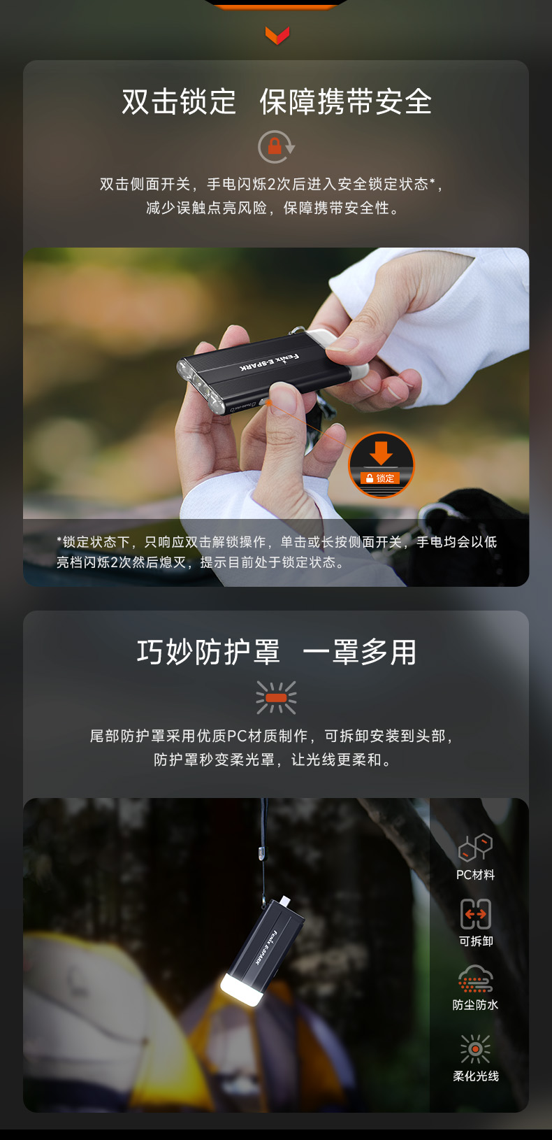 Fenix菲尼克斯 E-SPARK充电宝手电应急便携Type-C充电EDC小手电筒