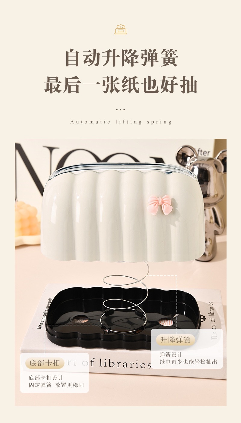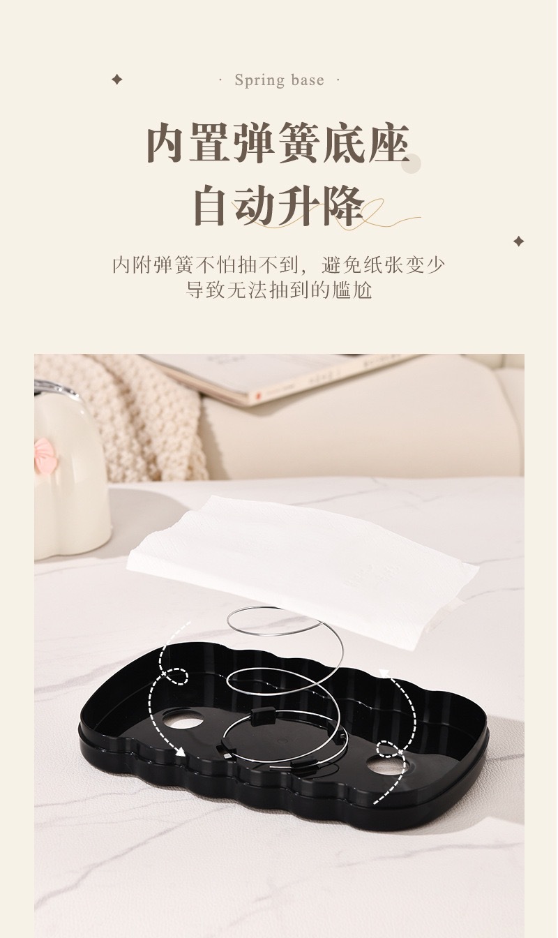 【内置弹簧底座❗自动升降】告别手抠尴尬,法式黑底吐司纸巾盒桌面收纳抽纸盒客厅餐桌北欧风大容量餐巾纸盒。rg