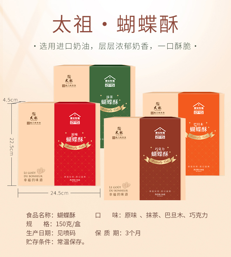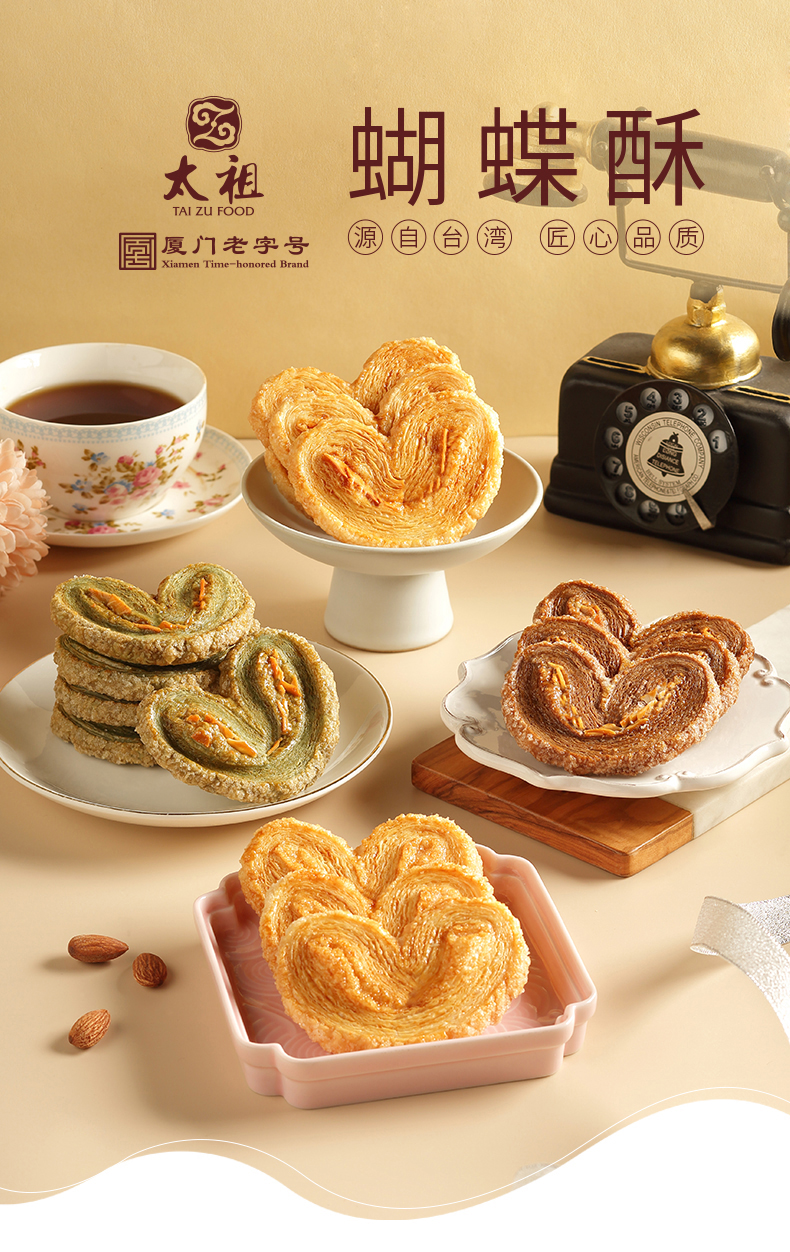 厦门老字号太祖蝴蝶酥巧克力/巴旦木/原味/抹茶/礼盒装福建特产