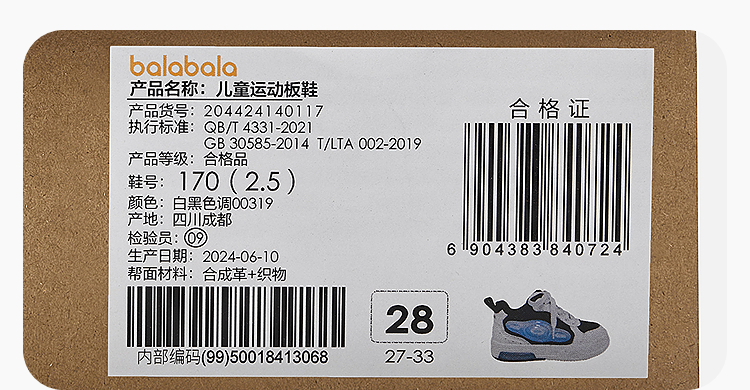 巴拉巴拉童鞋儿童运动鞋男童板鞋中帮鞋子秋冬透气休闲鞋时尚百搭