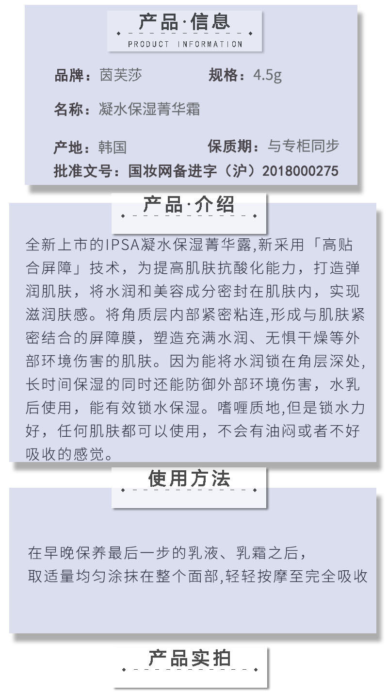 【爆款超低价预售 急单慎拍】正品小样 IPSA茵芙莎凝水保湿菁华露4.5g 保湿锁水啫喱面霜非卖品