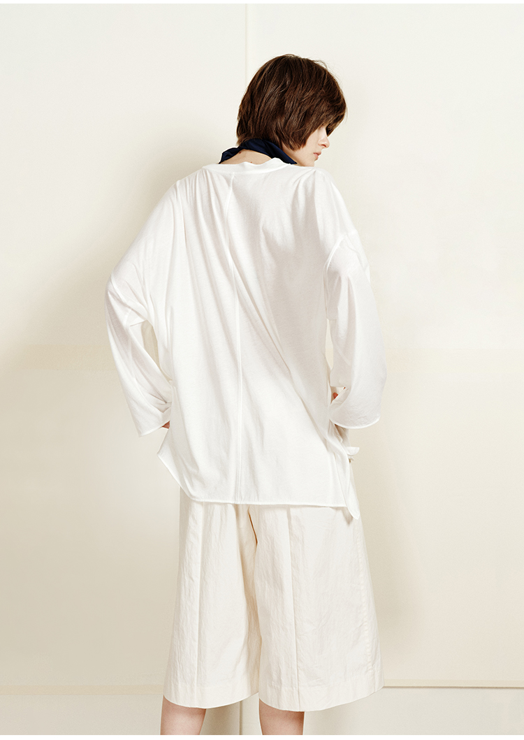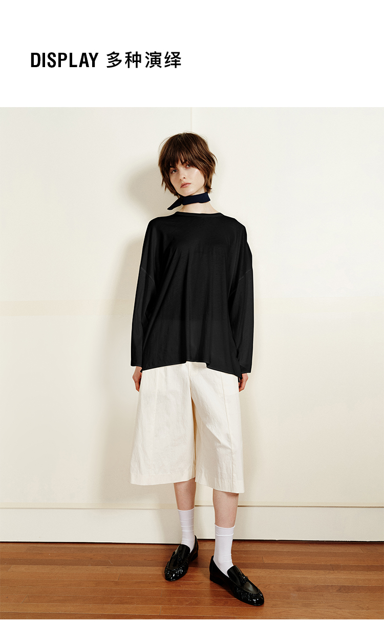 hidemi副线小h 匹马棉圆领百搭错层长袖T恤上衣