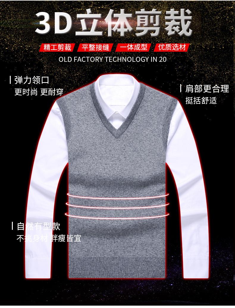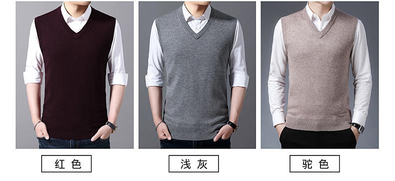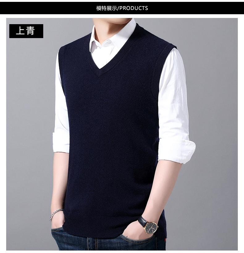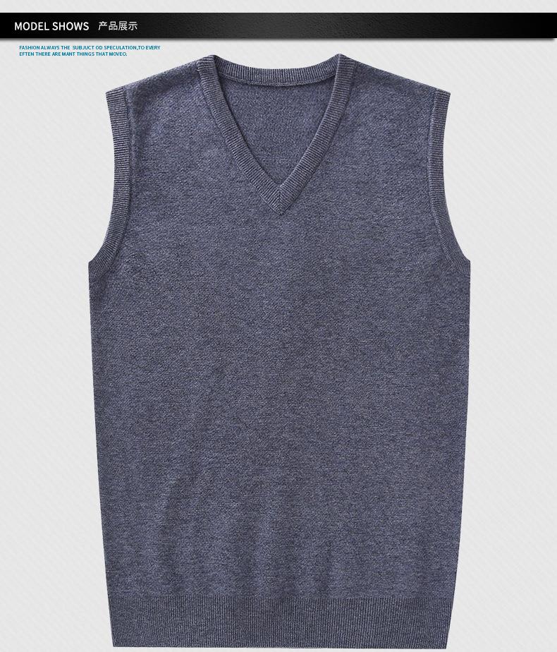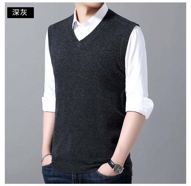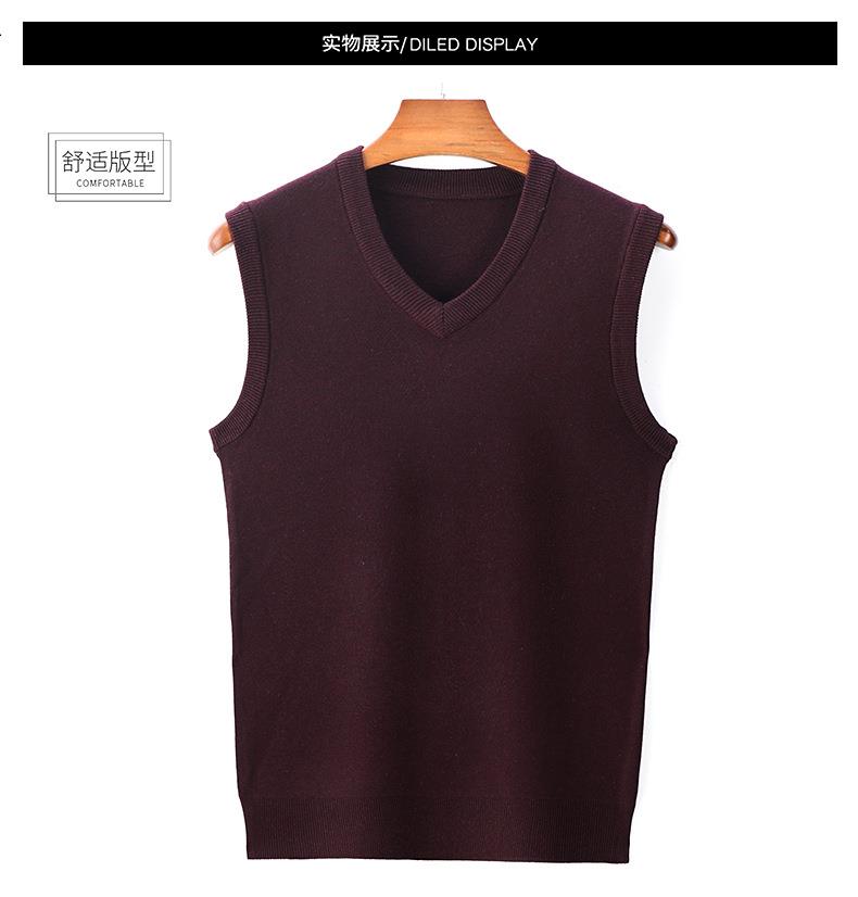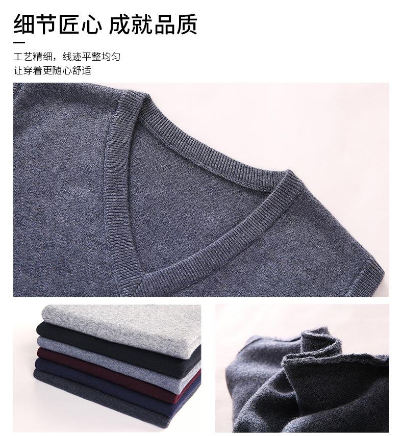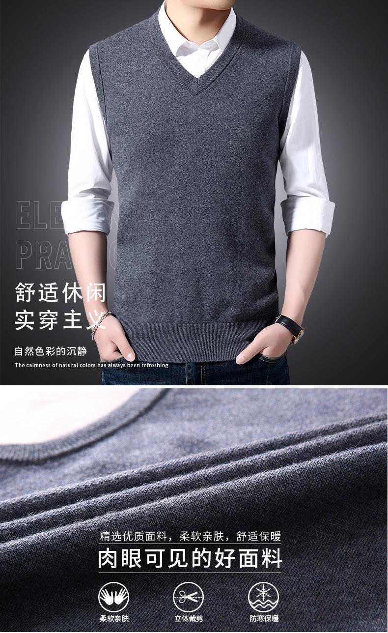 含毛混纺秋冬季男士羊毛背心中年休闲V领加厚爸爸男装打底衫