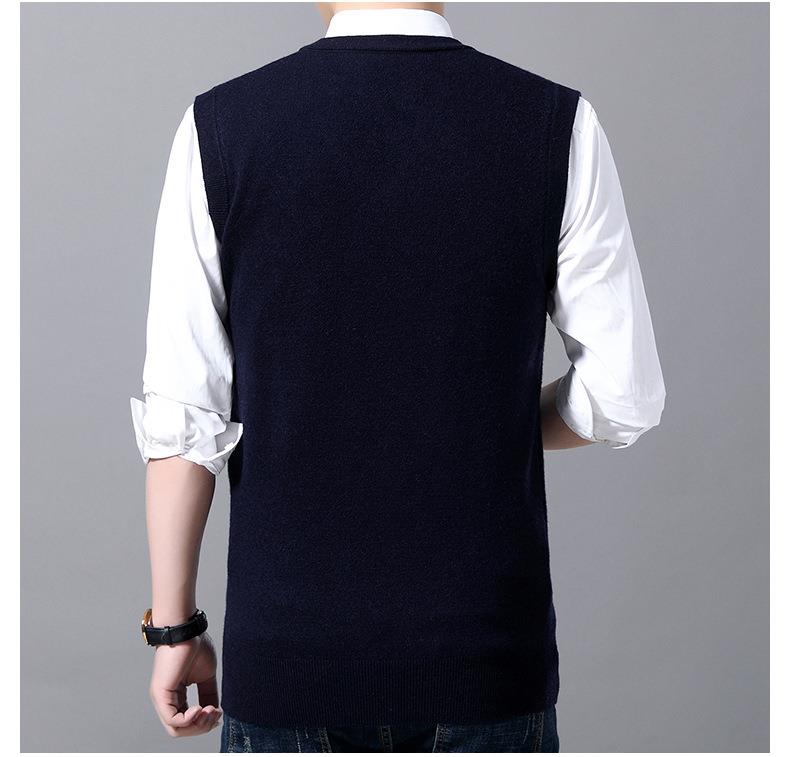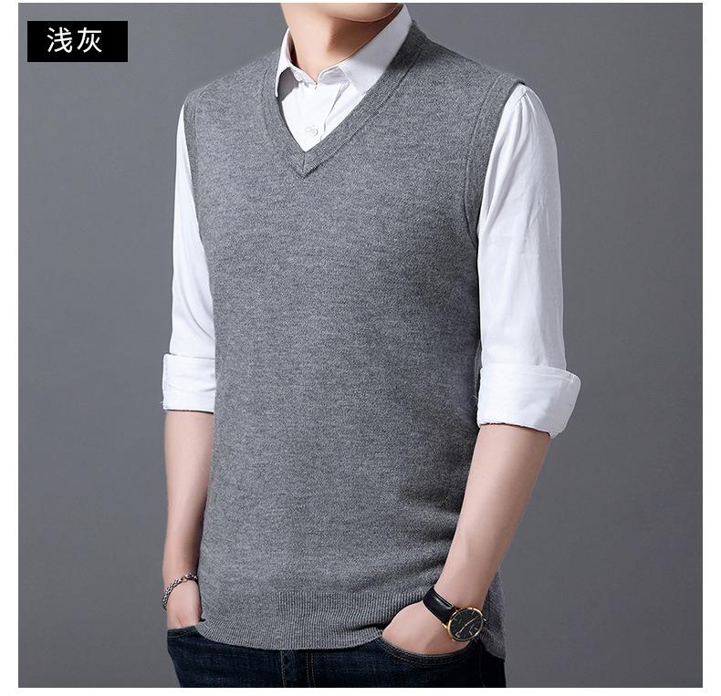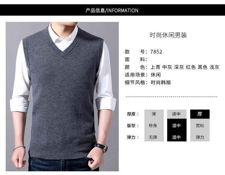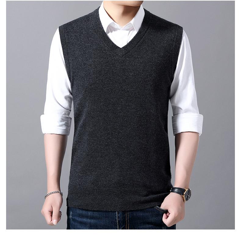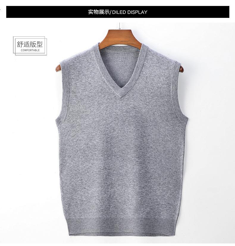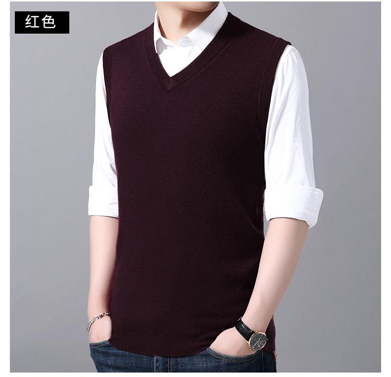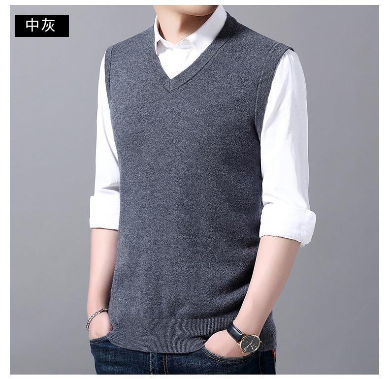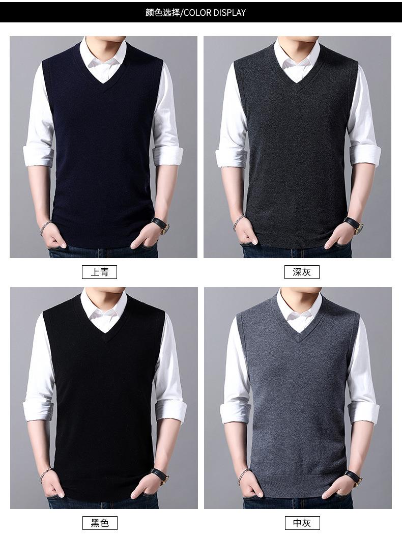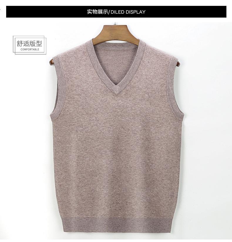 含毛混纺秋冬季男士羊毛背心中年休闲V领加厚爸爸男装打底衫