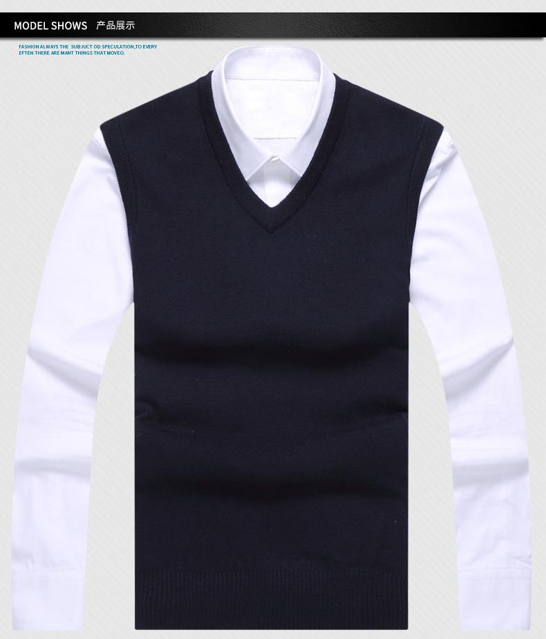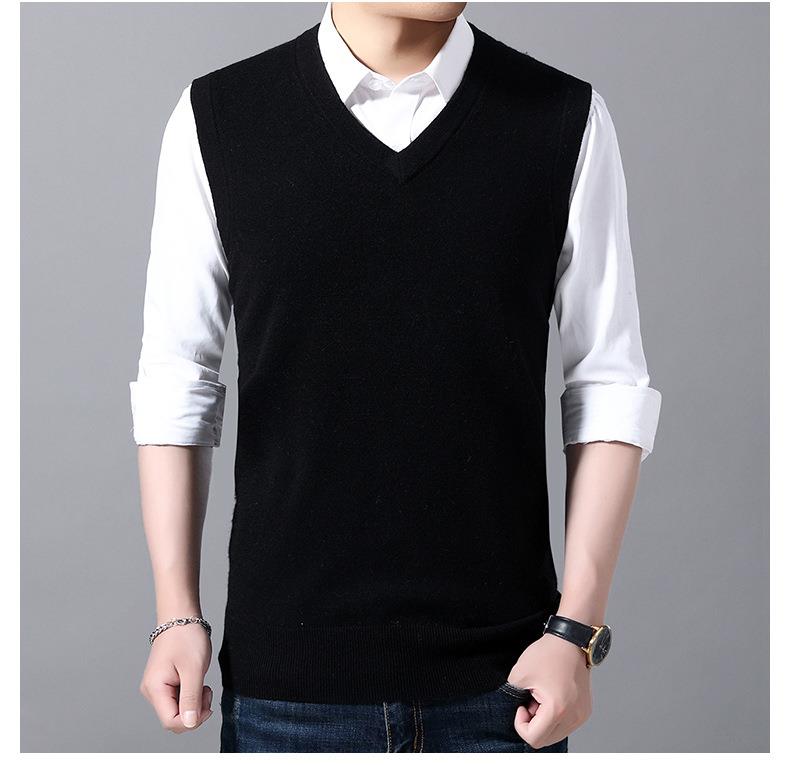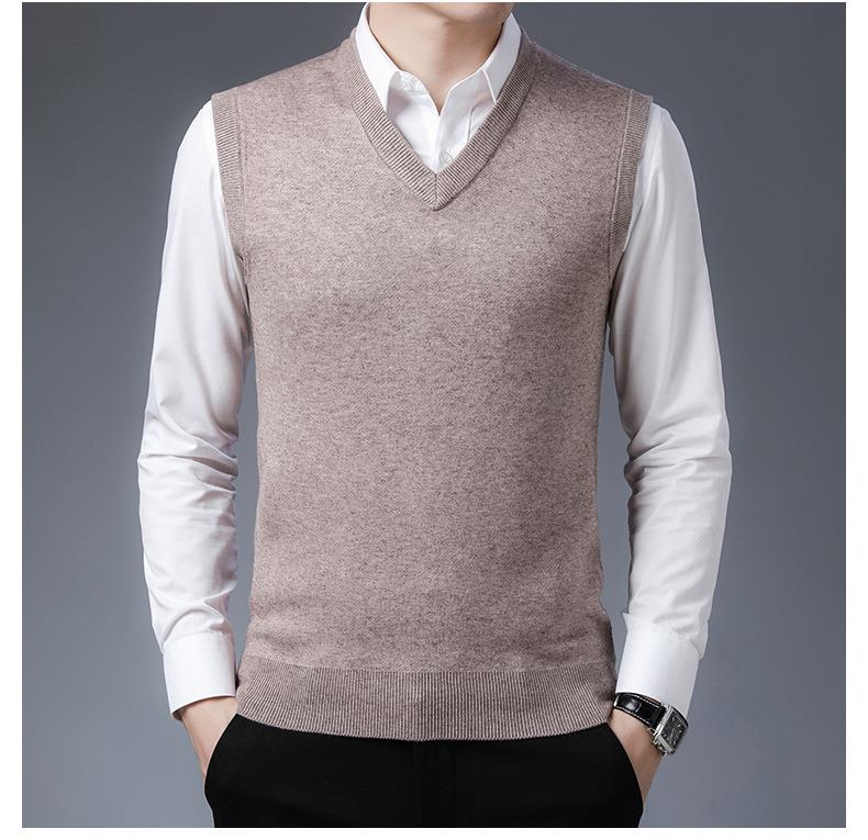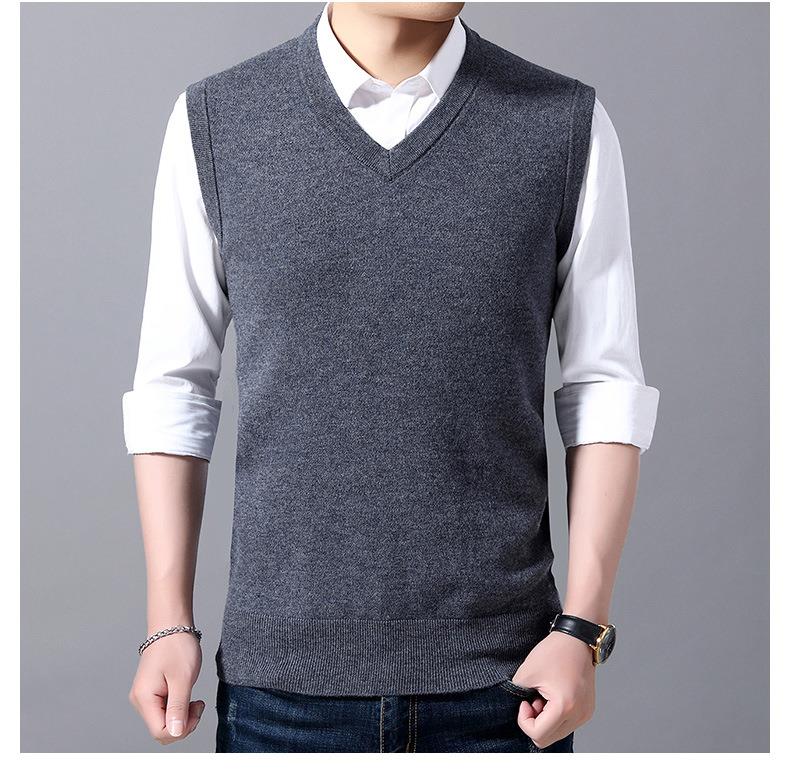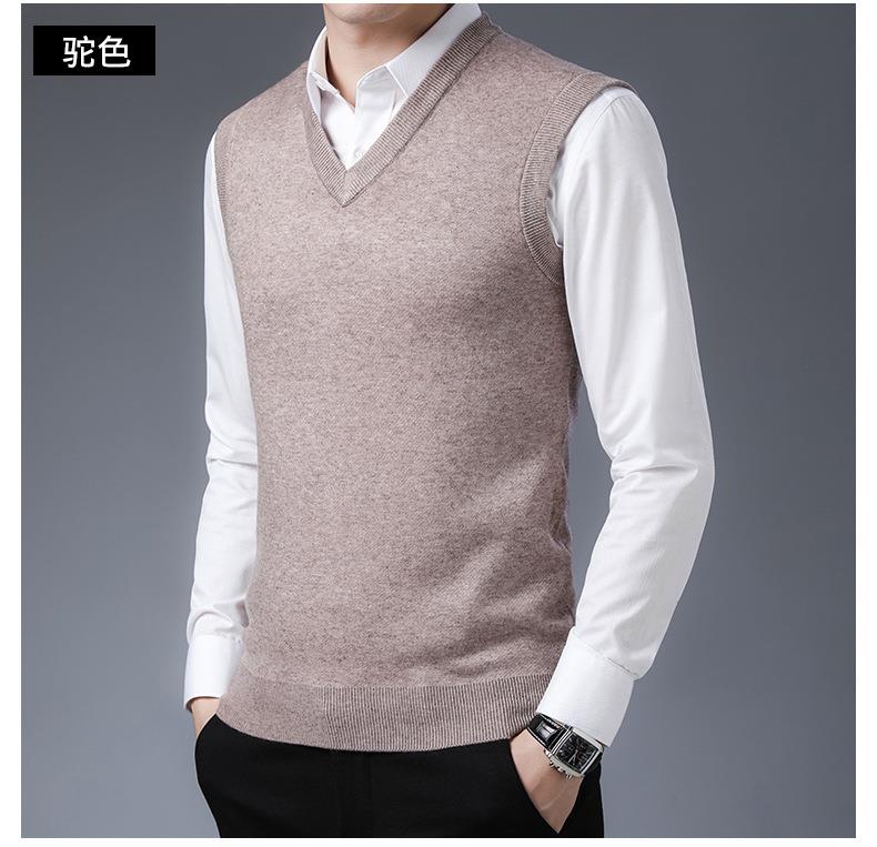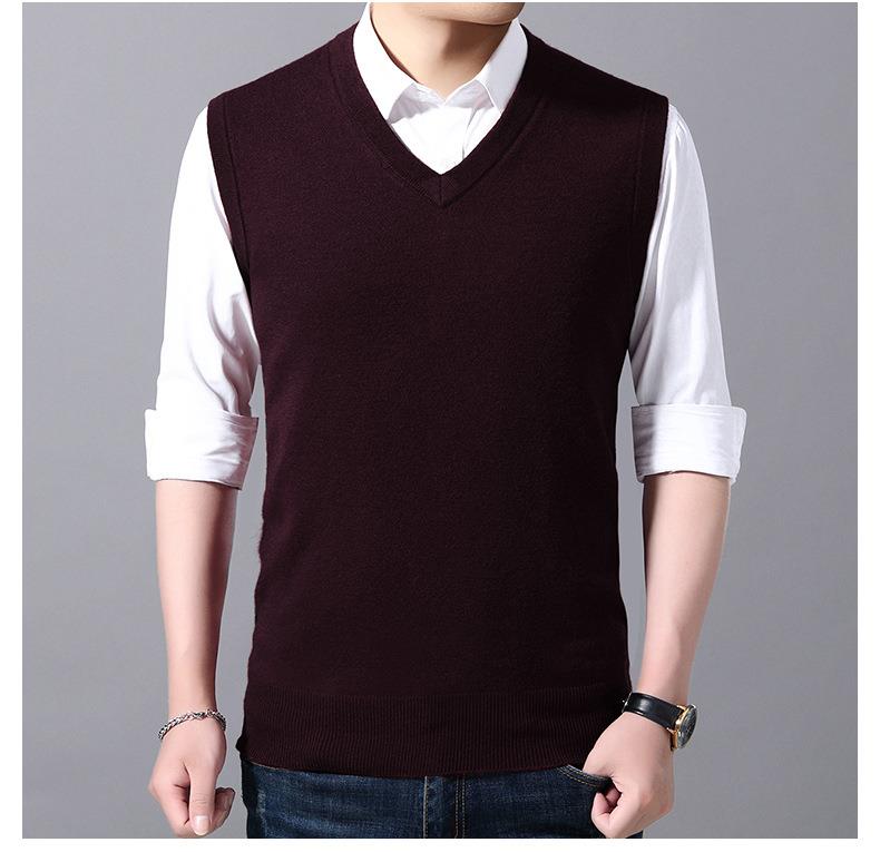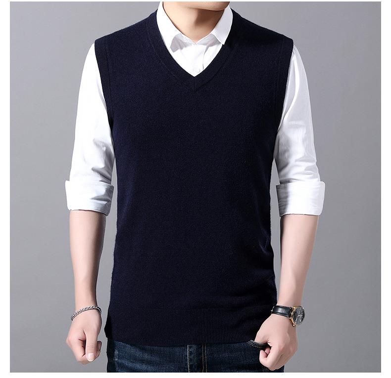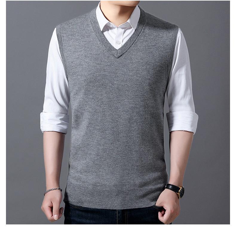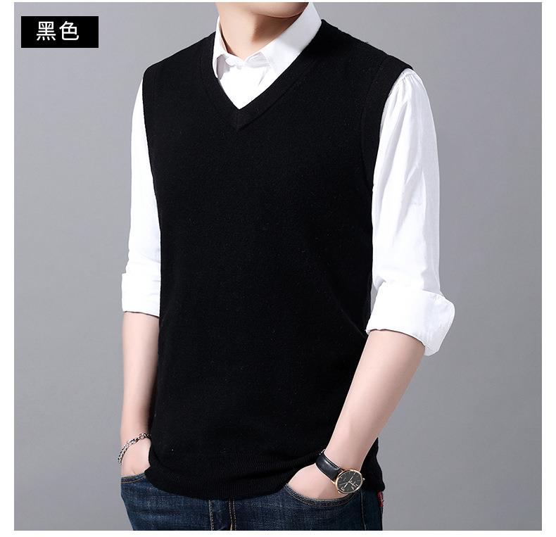 含毛混纺秋冬季男士羊毛背心中年休闲V领加厚爸爸男装打底衫