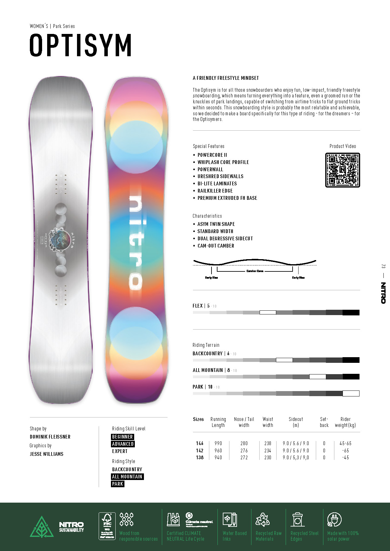 Nitro 23-24 【OPTISYM Womens】 女款雪板 PARK 142 146
