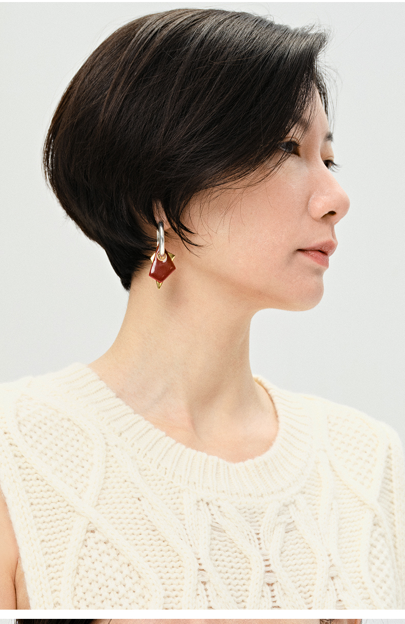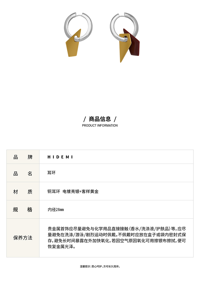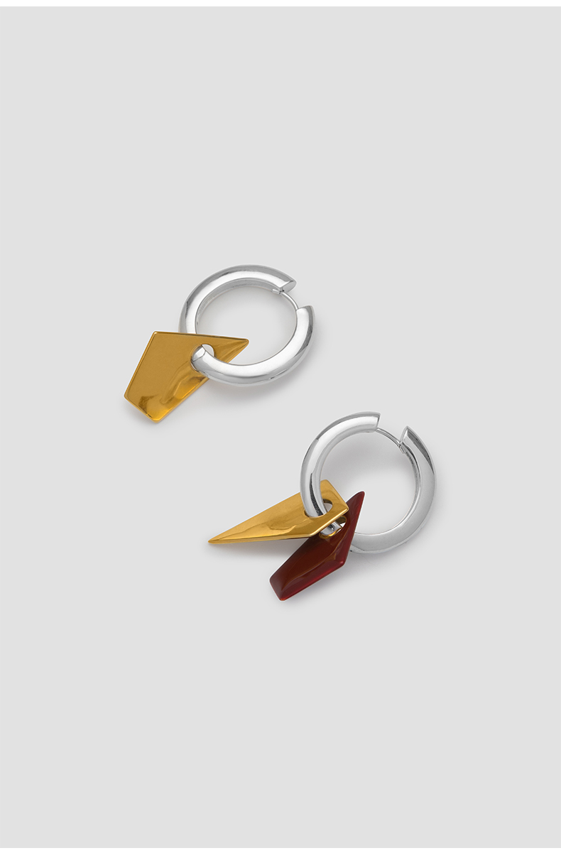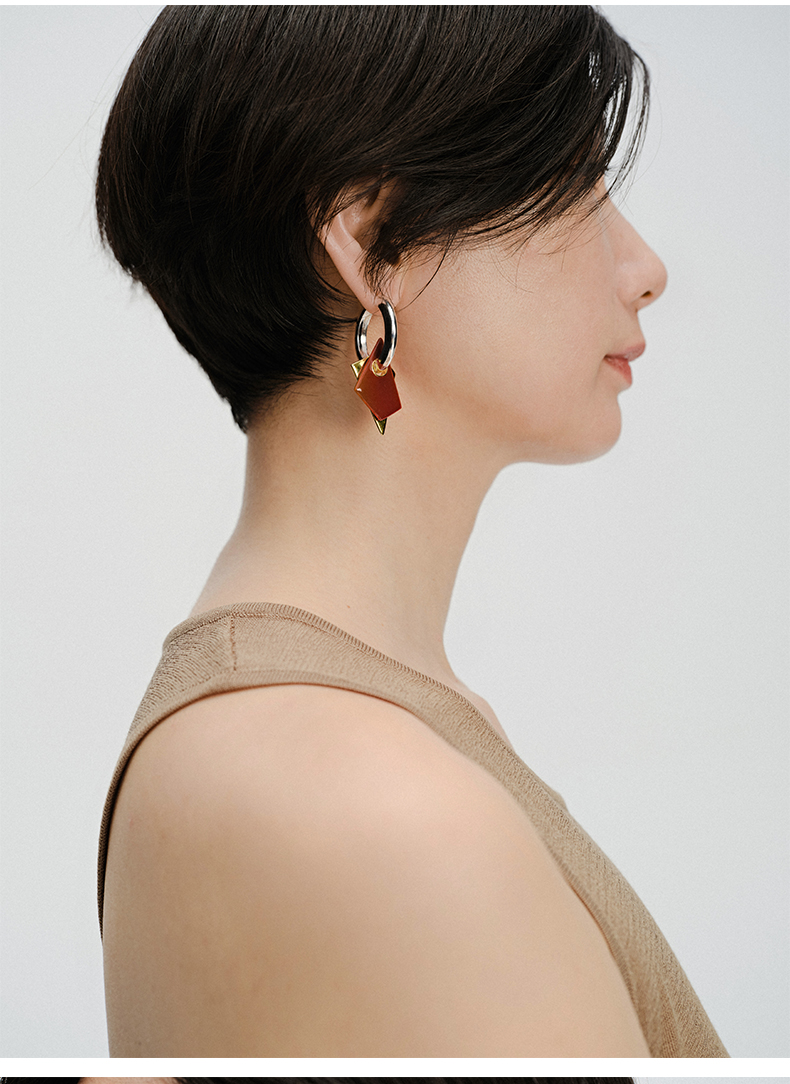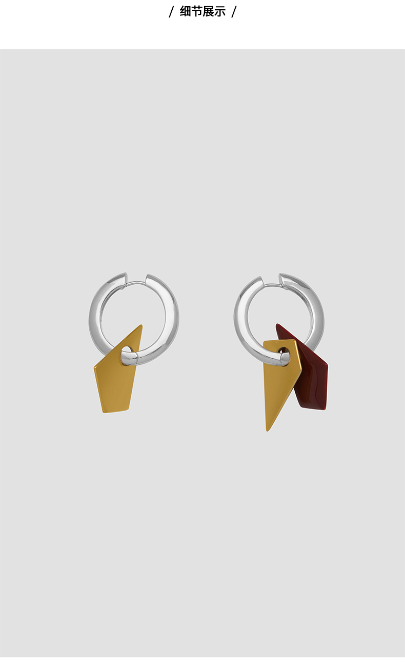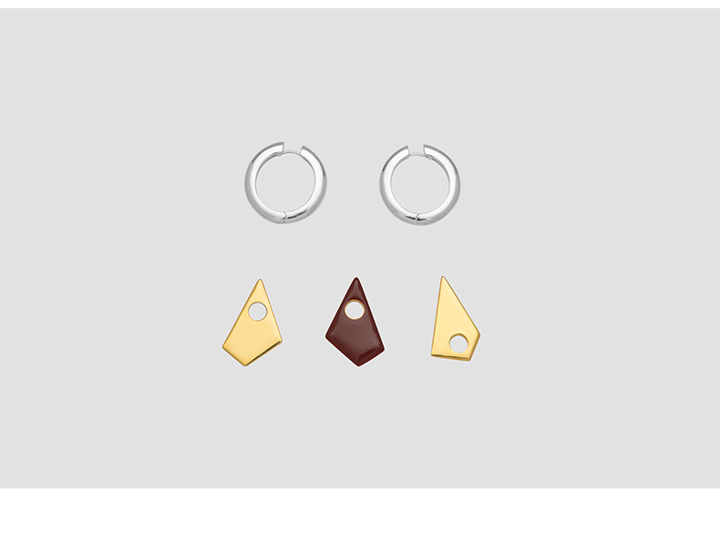 HIDEMI简约几何设计感不对称可拆卸式红色烤金耳环