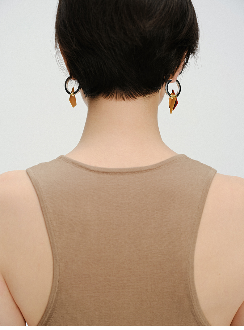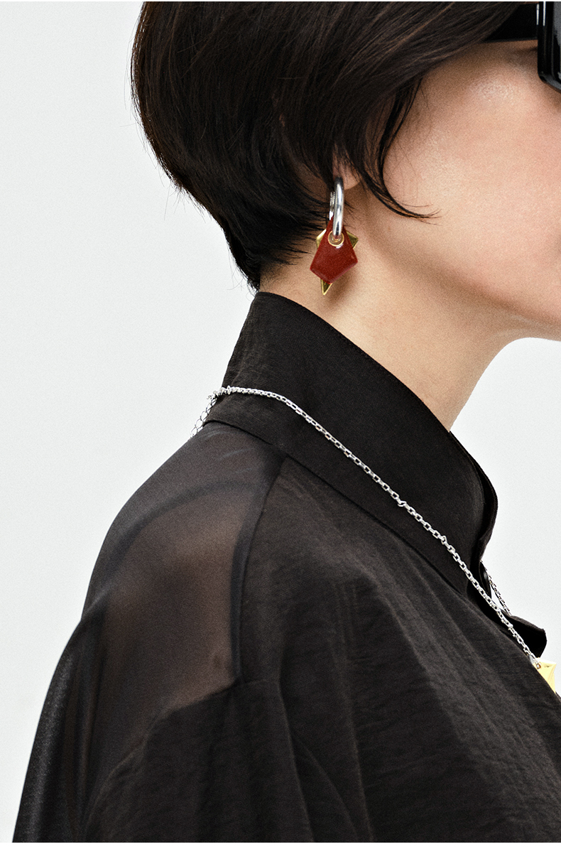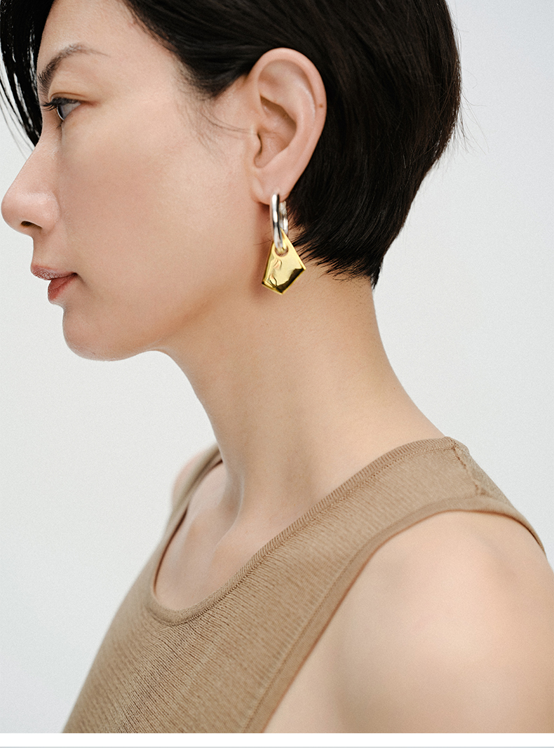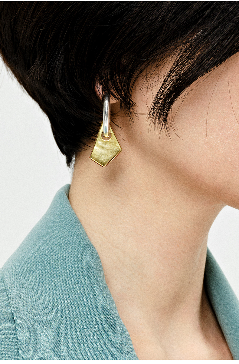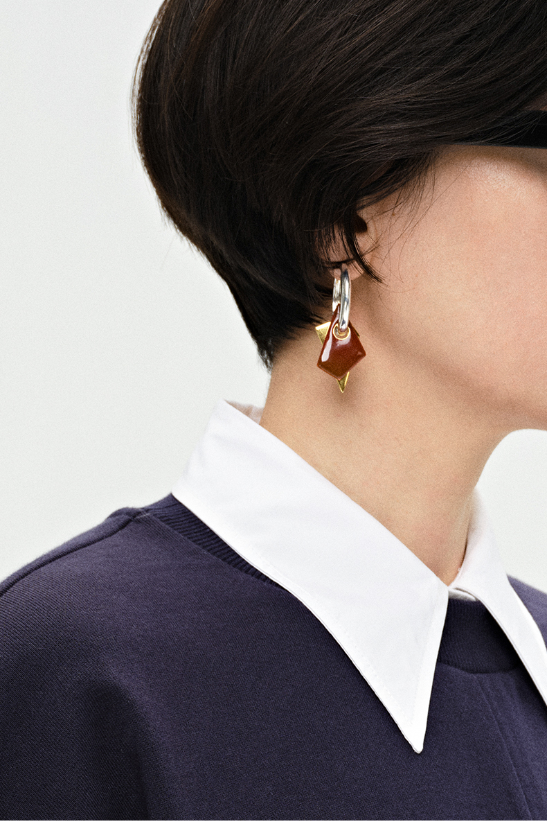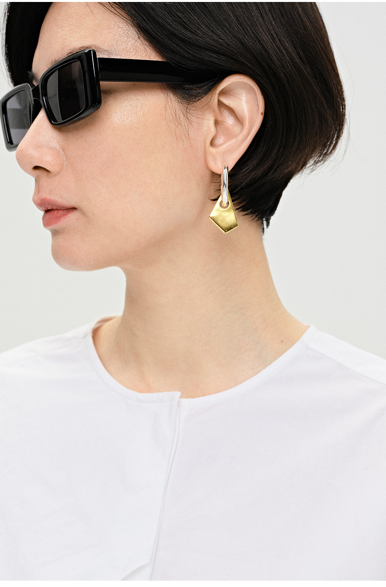 HIDEMI简约几何设计感不对称可拆卸式红色烤金耳环