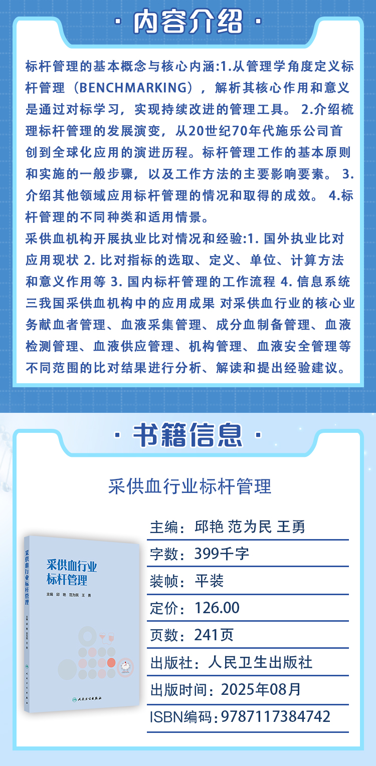 采供血行业标杆管理 邱艳 范为民 王勇 标杆管理在采供血行业的应用 血液采集基本情况及过程管理 9787117384742 人民卫生出版社