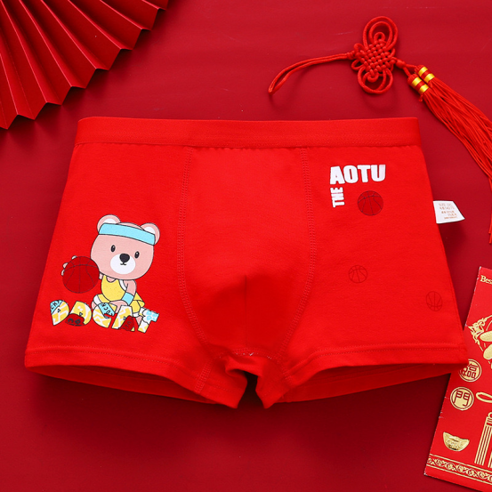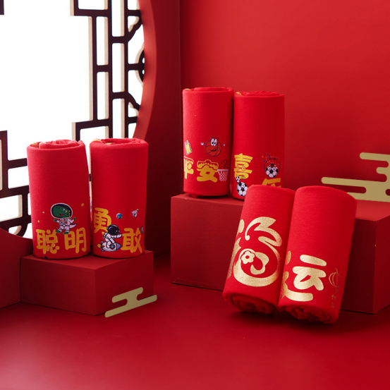 【(A类精梳棉定制)新年鸿运儿童内裤礼盒装买3赠1】✅Q萌印花 吉祥寓意,🍂穿红装好运相随“福气不掉🔥“安心印染不易褪色 ❤️采用优质纯棉面料柔软/透气/舒适🌟