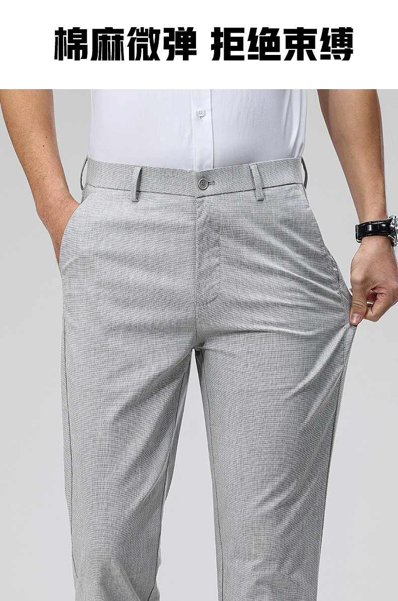 圣得西男士休闲裤春夏季商务休闲棉麻混纺透气舒适男装长裤子男2522913337