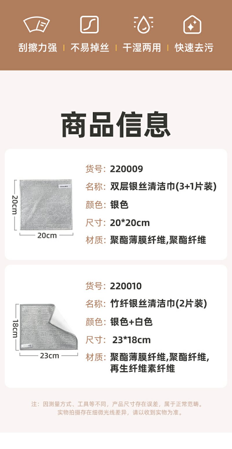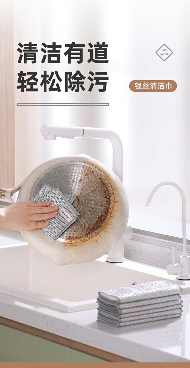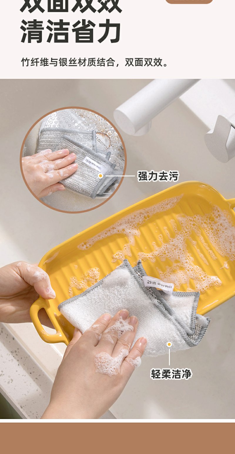 【茶花】双层银丝清洁巾洗碗巾刮擦力强