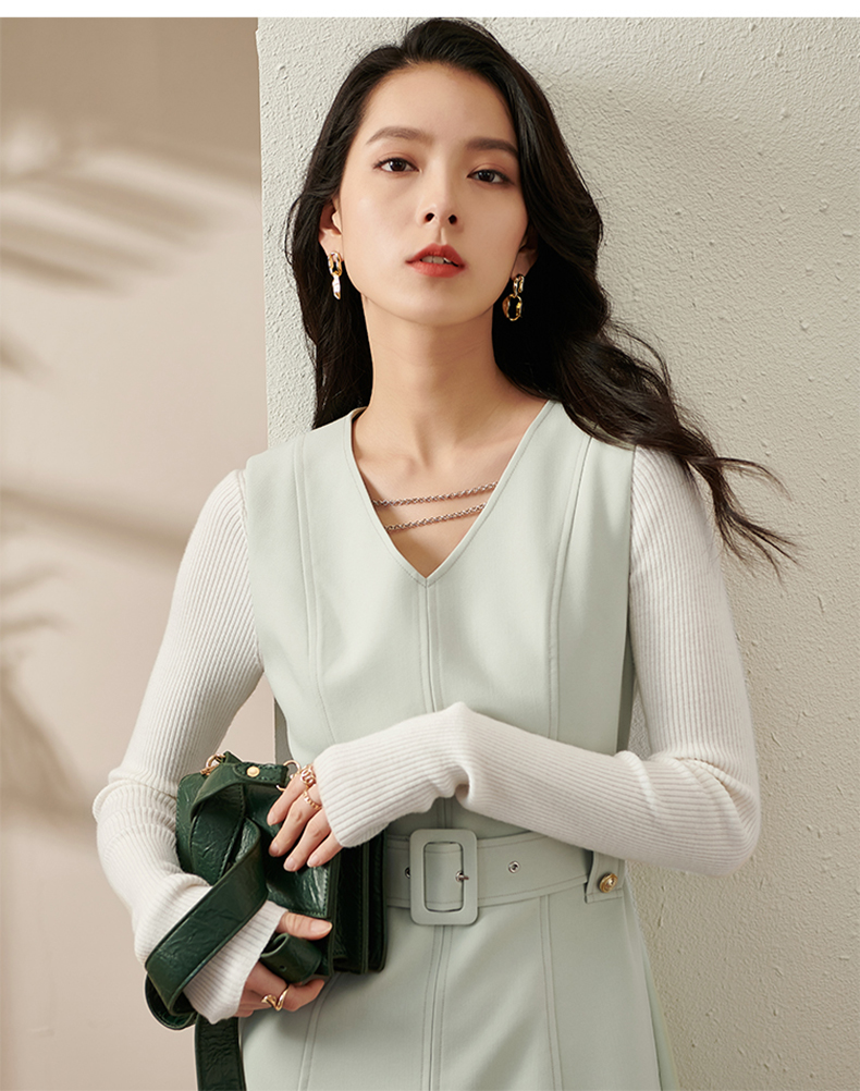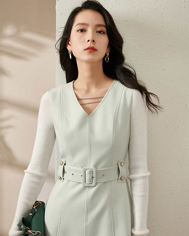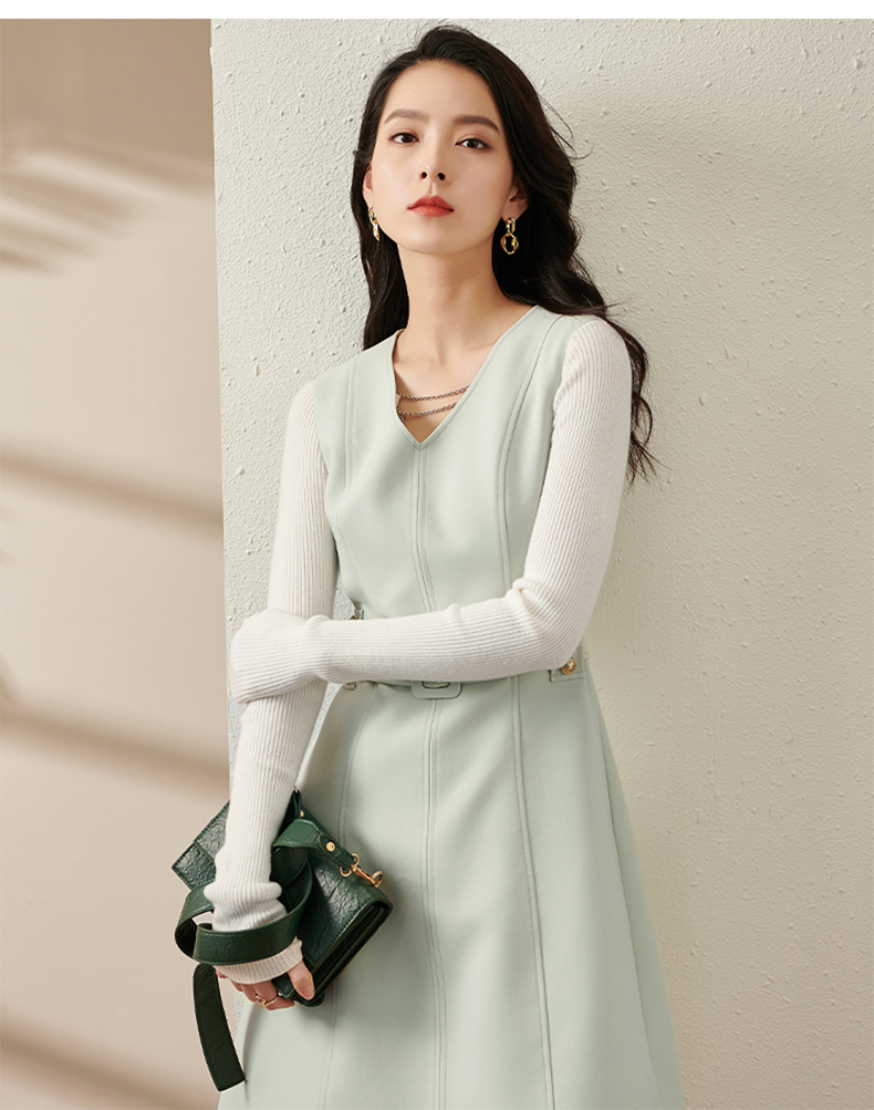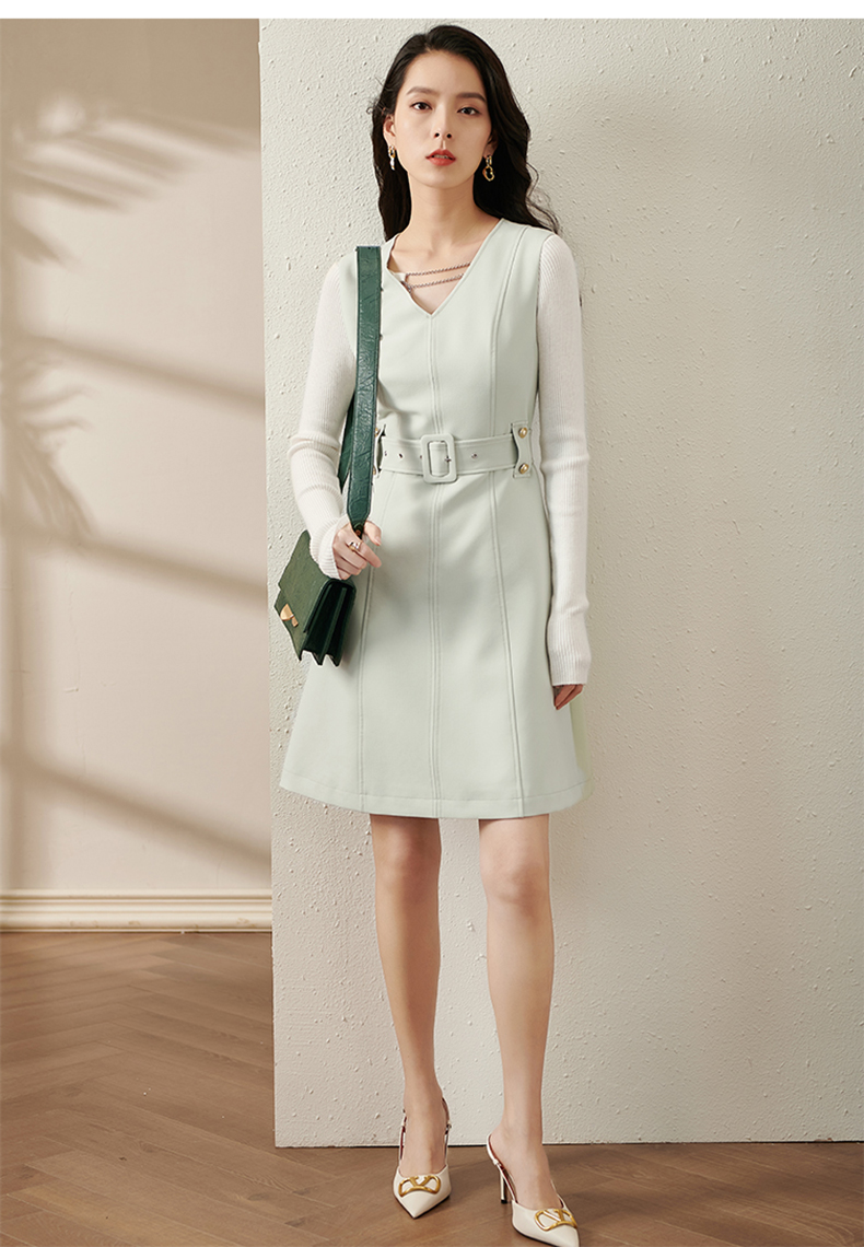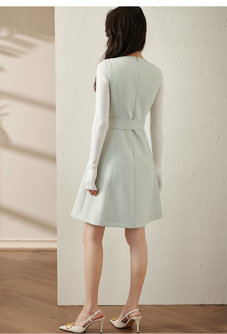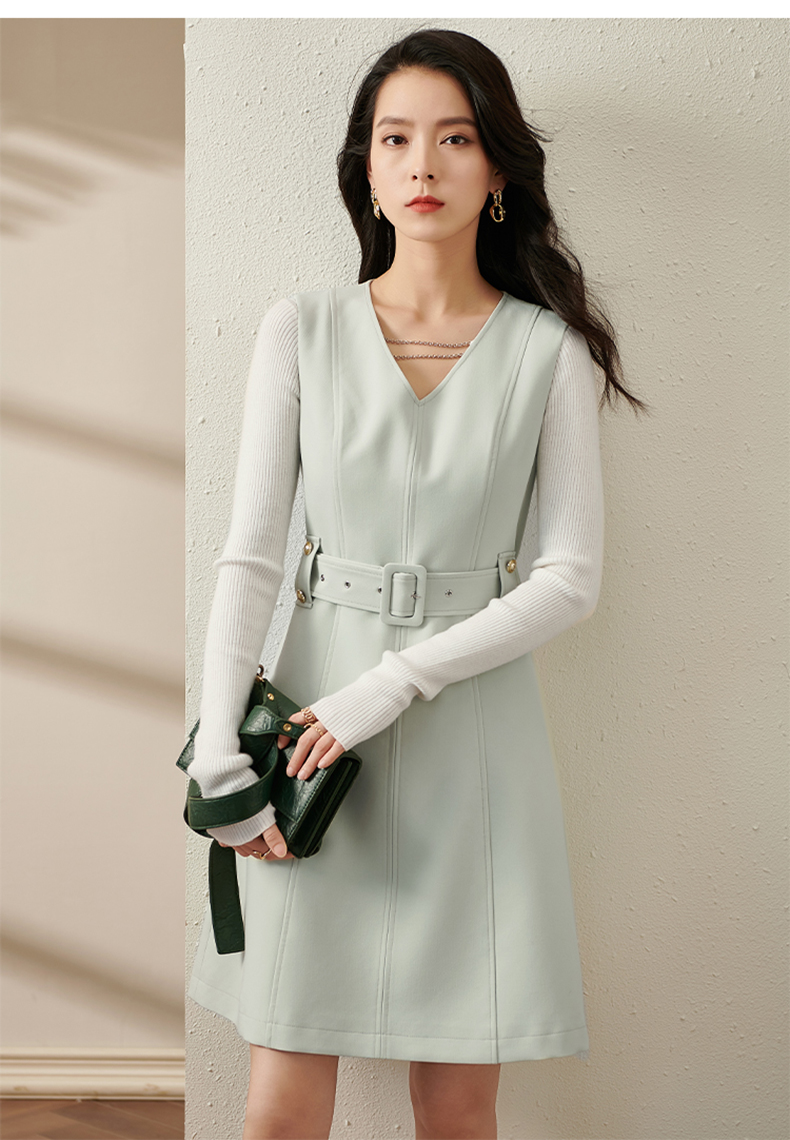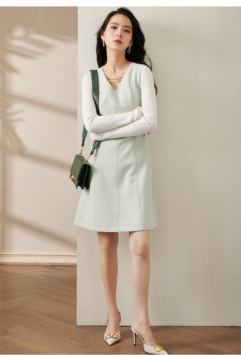 剩S/M/L/XL 芳外新款V领背心裙新款V领高腰收腰款无袖背心连衣裙8T21CL1936