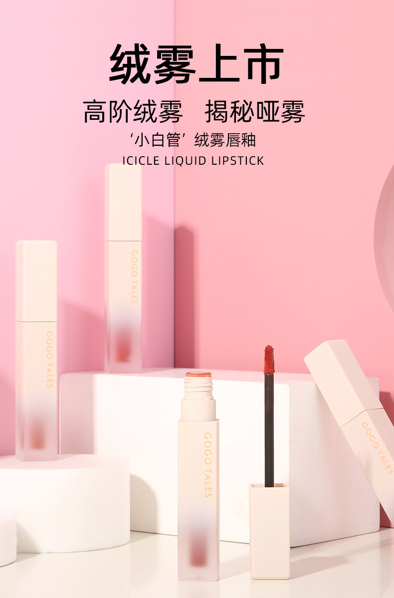 女神款~gogo tales戈戈舞小白管唇釉丝绒雾面哑光学生款夜市口红