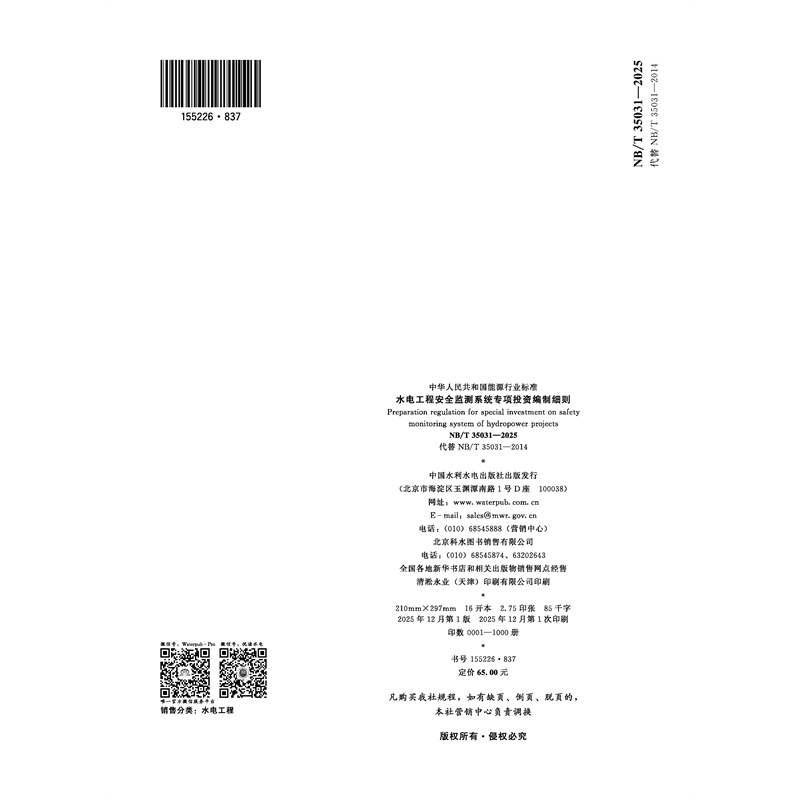 水电工程安全监测系统专项投资编制细则 NB/T 35031—2025 代替 NB/T 35031—2014