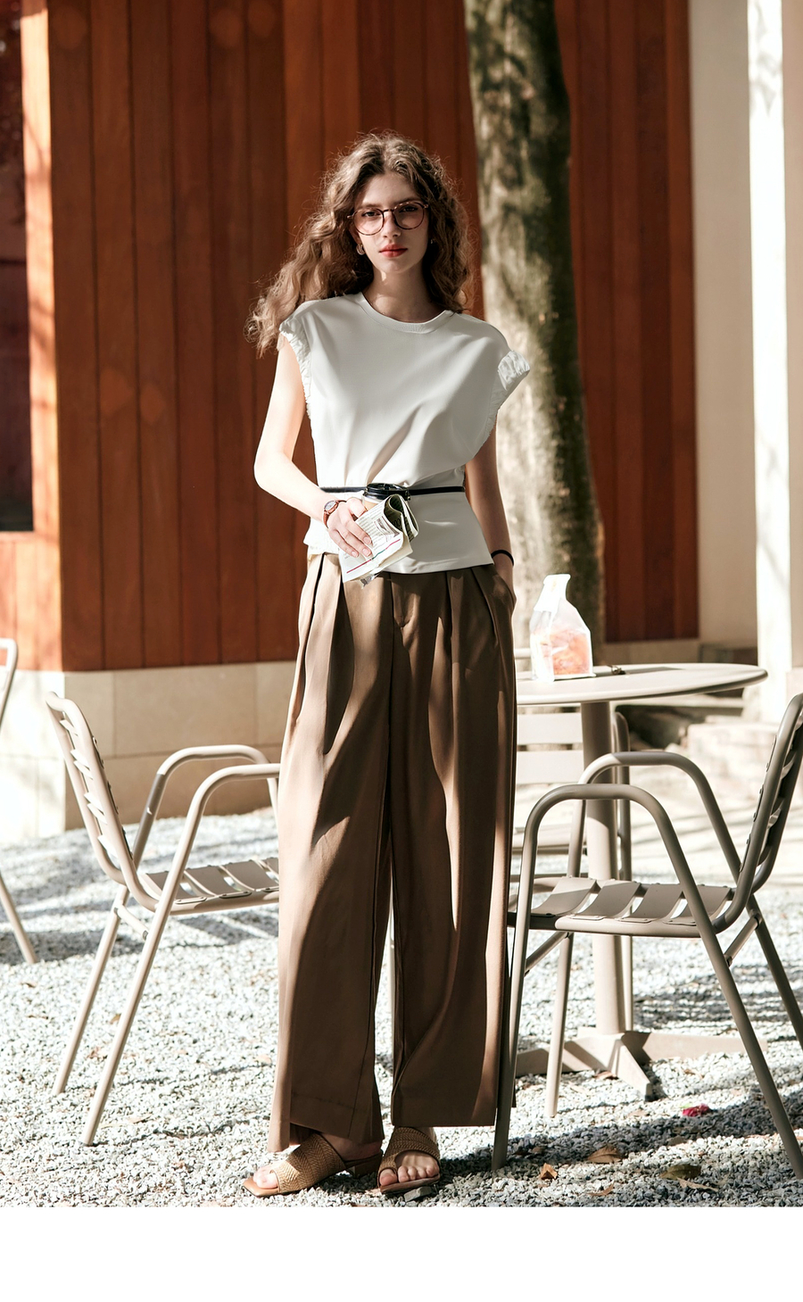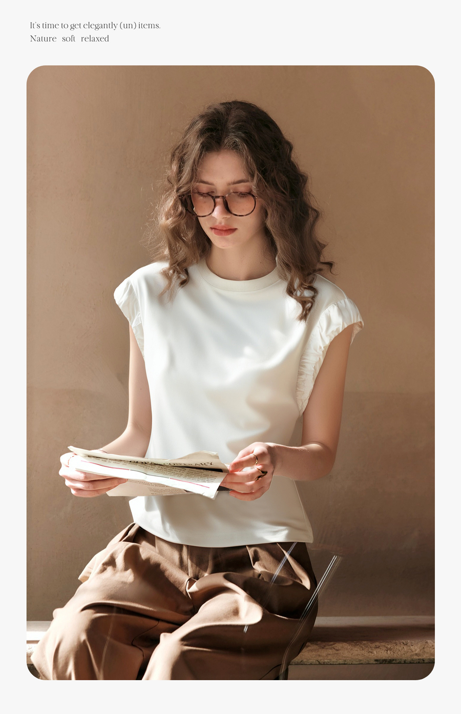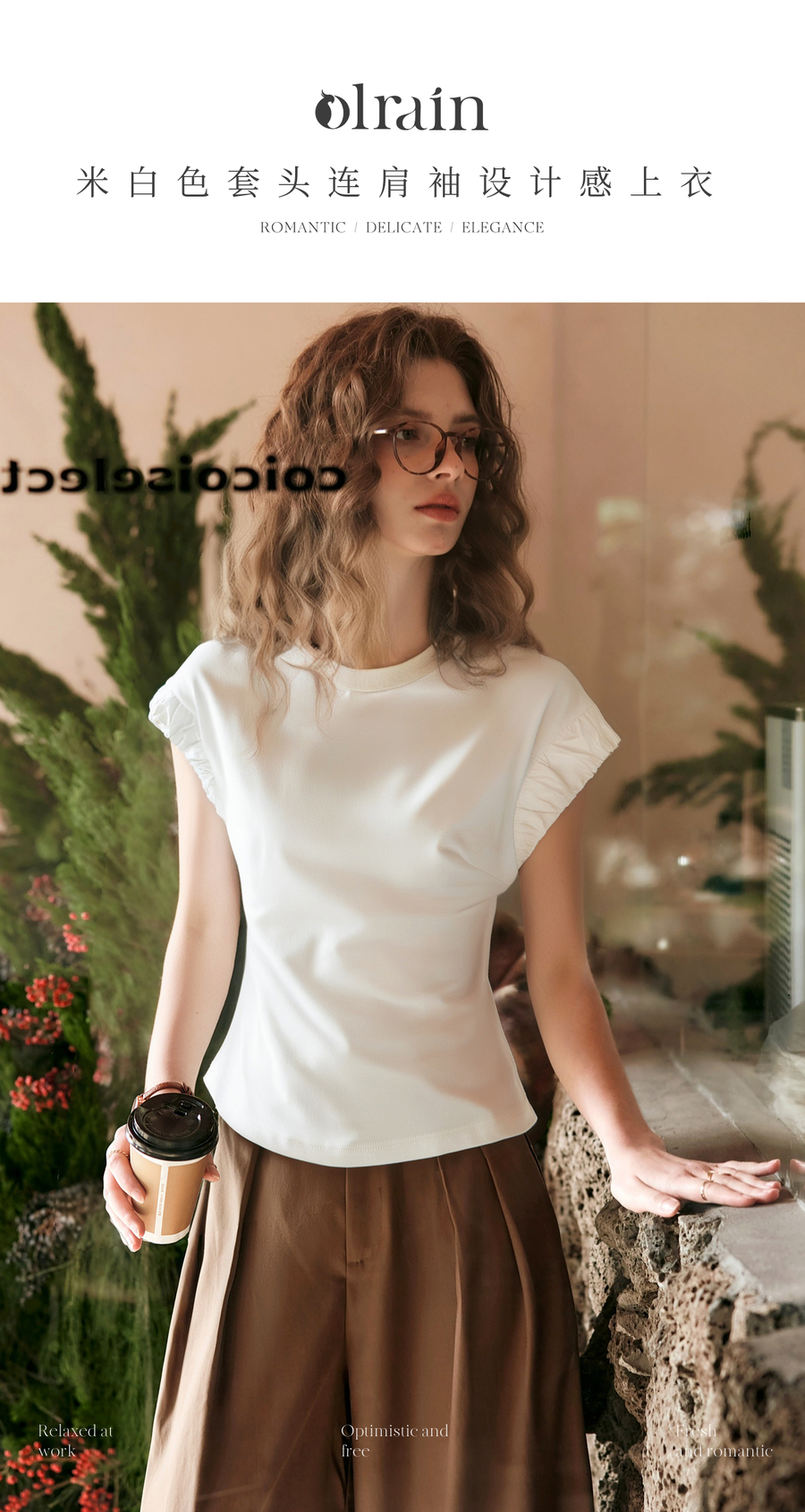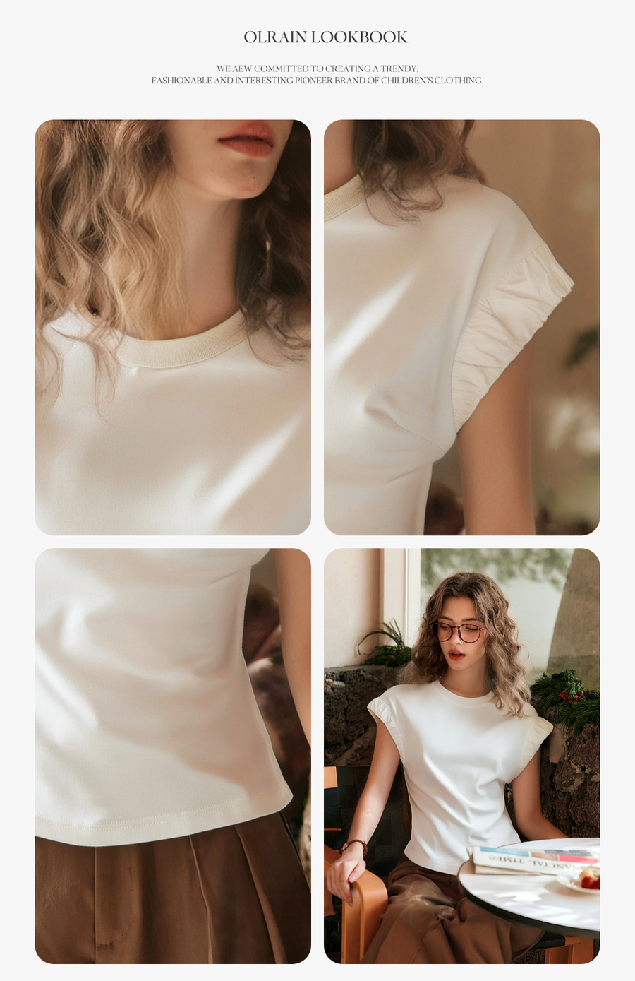 OLrain欧芮儿米白色套头连肩袖设计感上衣女夏季2025新款圆领T恤