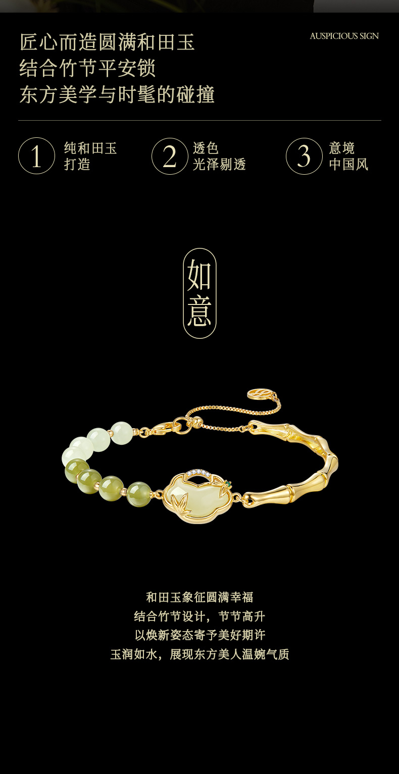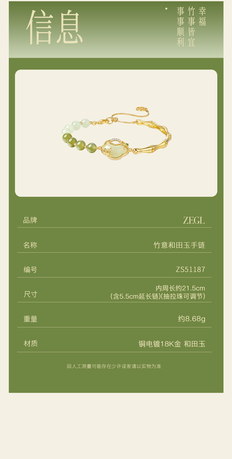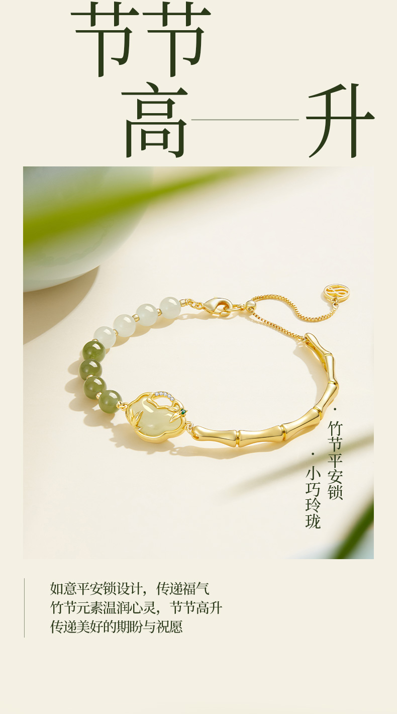 ZEGL设计师母亲节礼物和田玉手链女2024年新款竹节国风新中式手饰