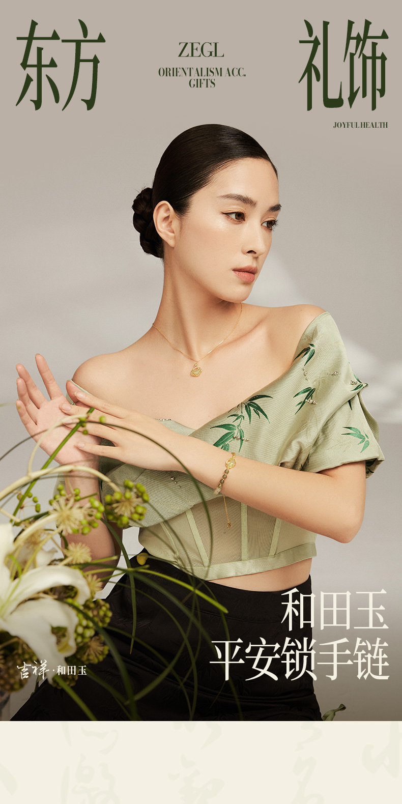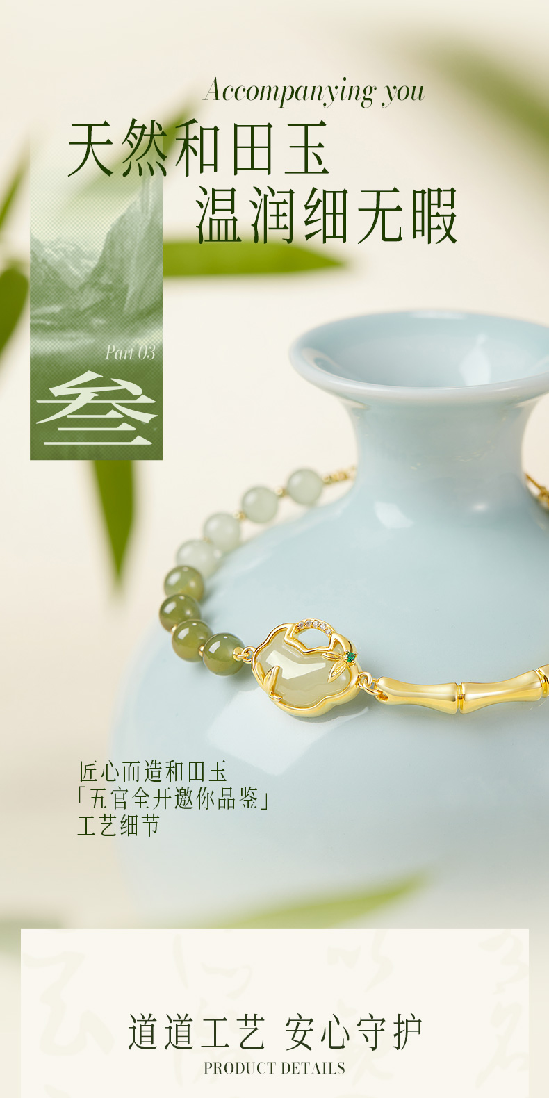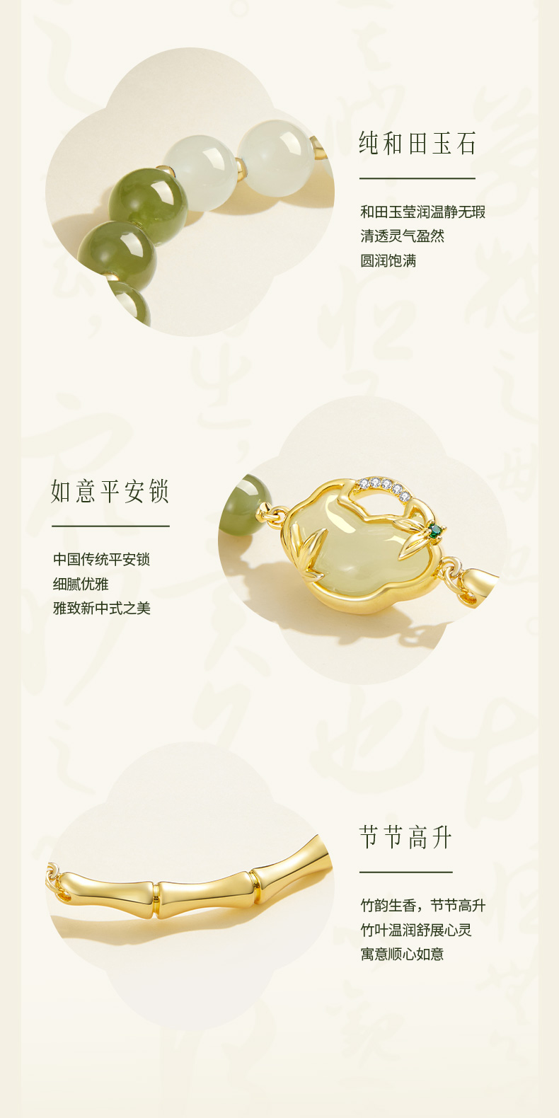 ZEGL设计师母亲节礼物和田玉手链女2024年新款竹节国风新中式手饰
