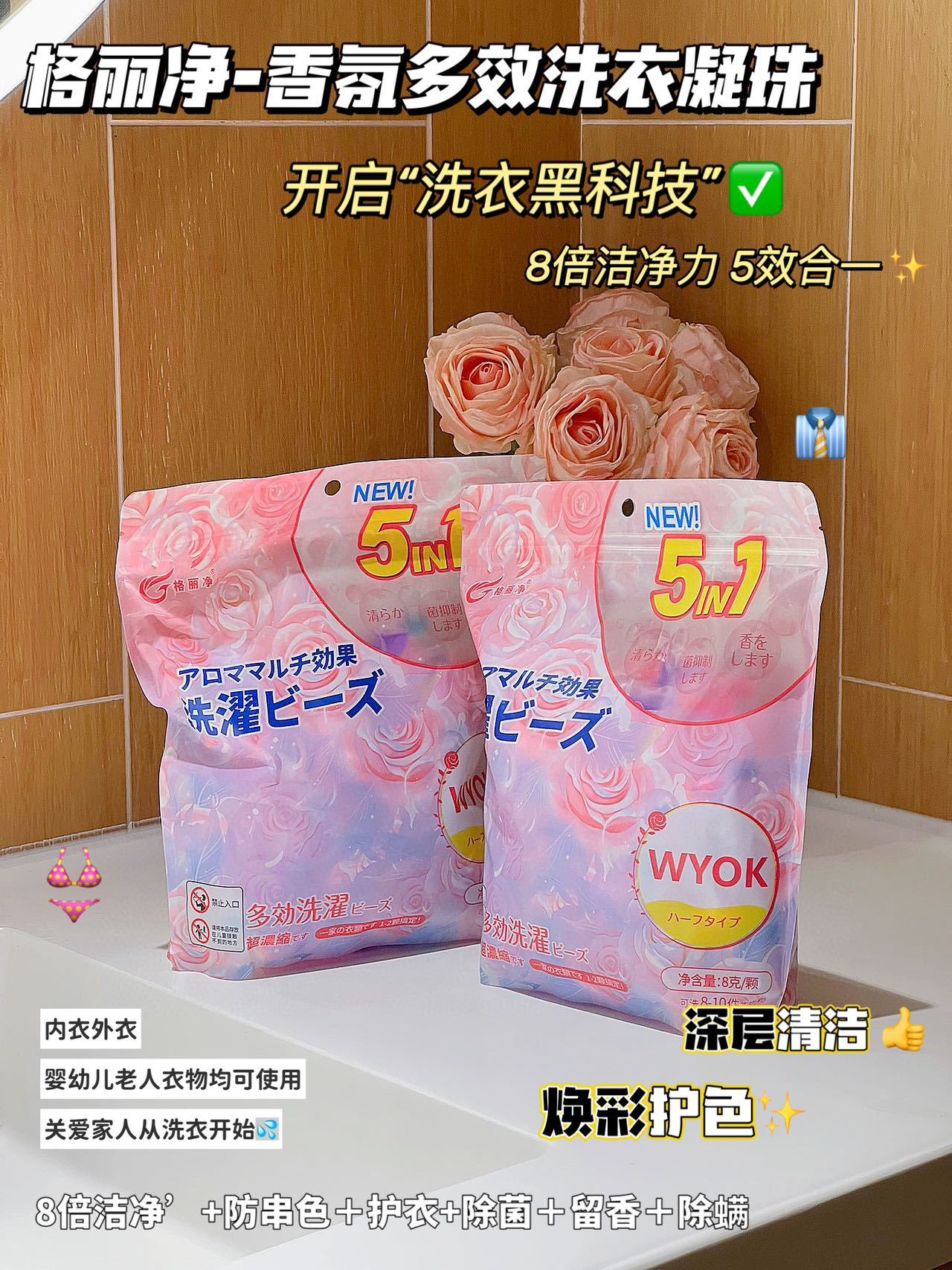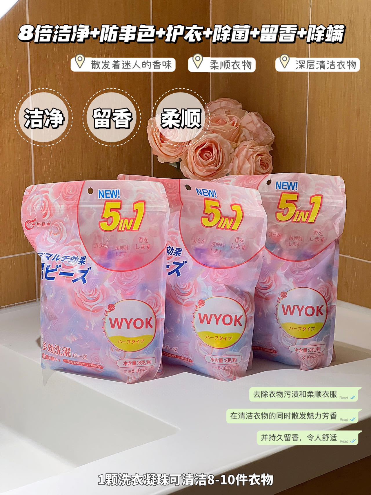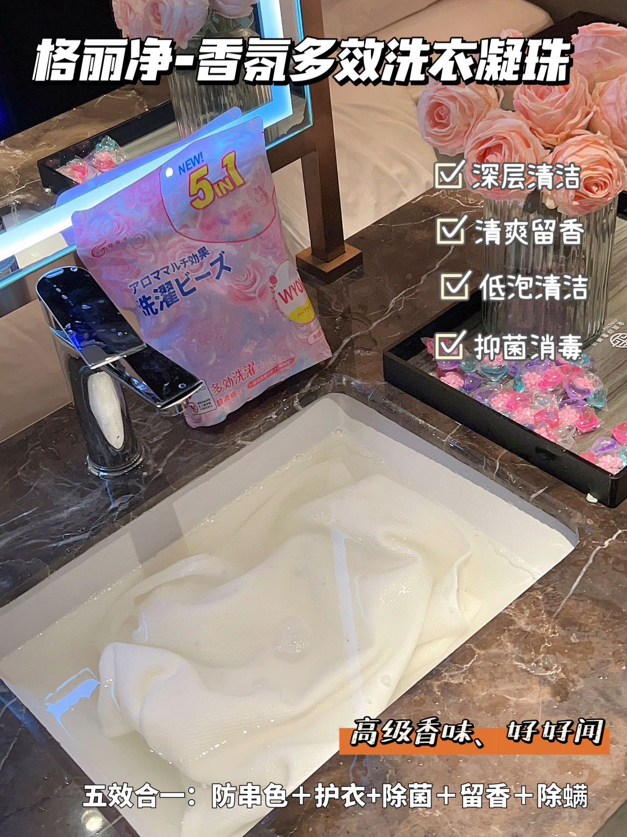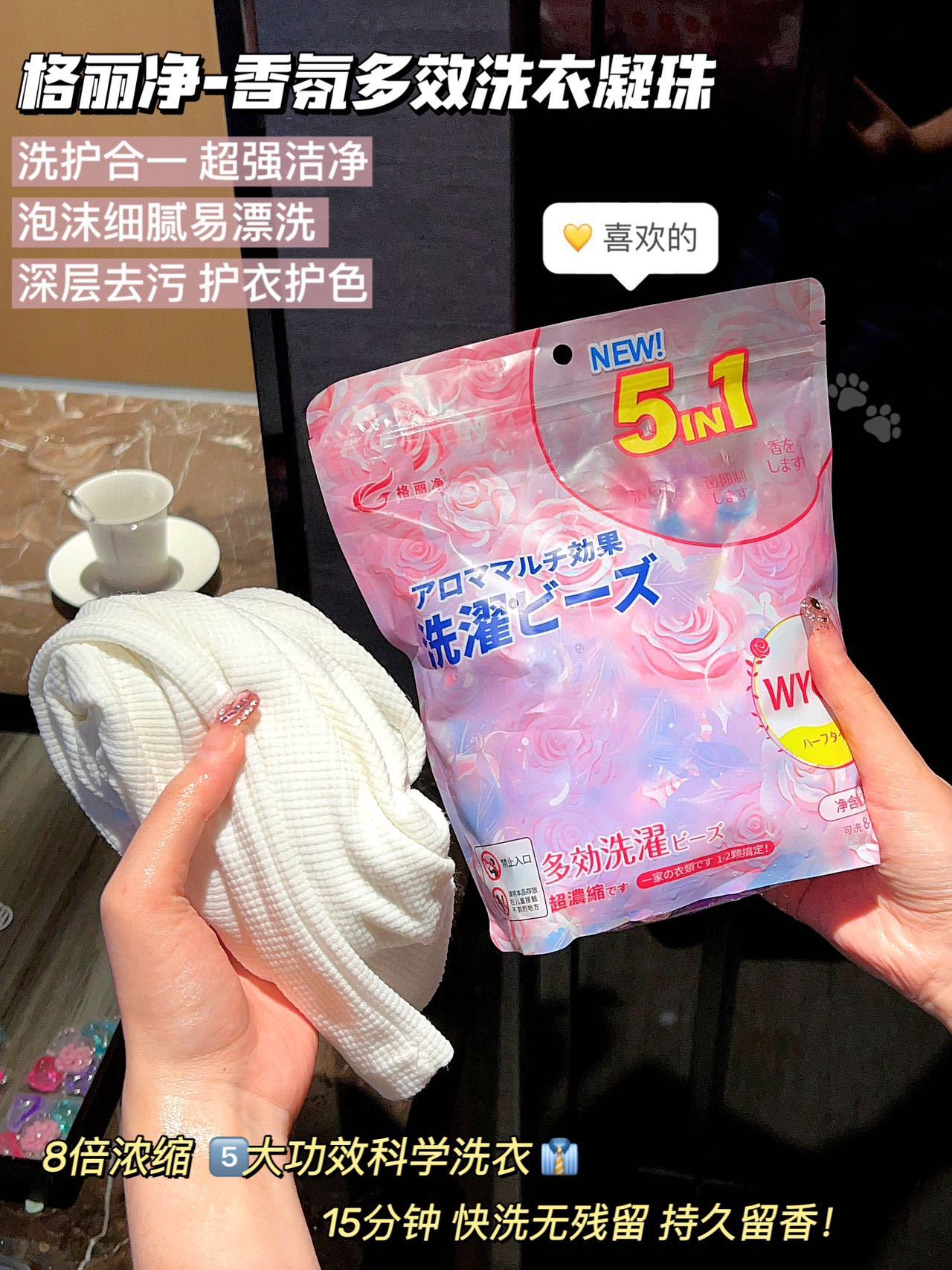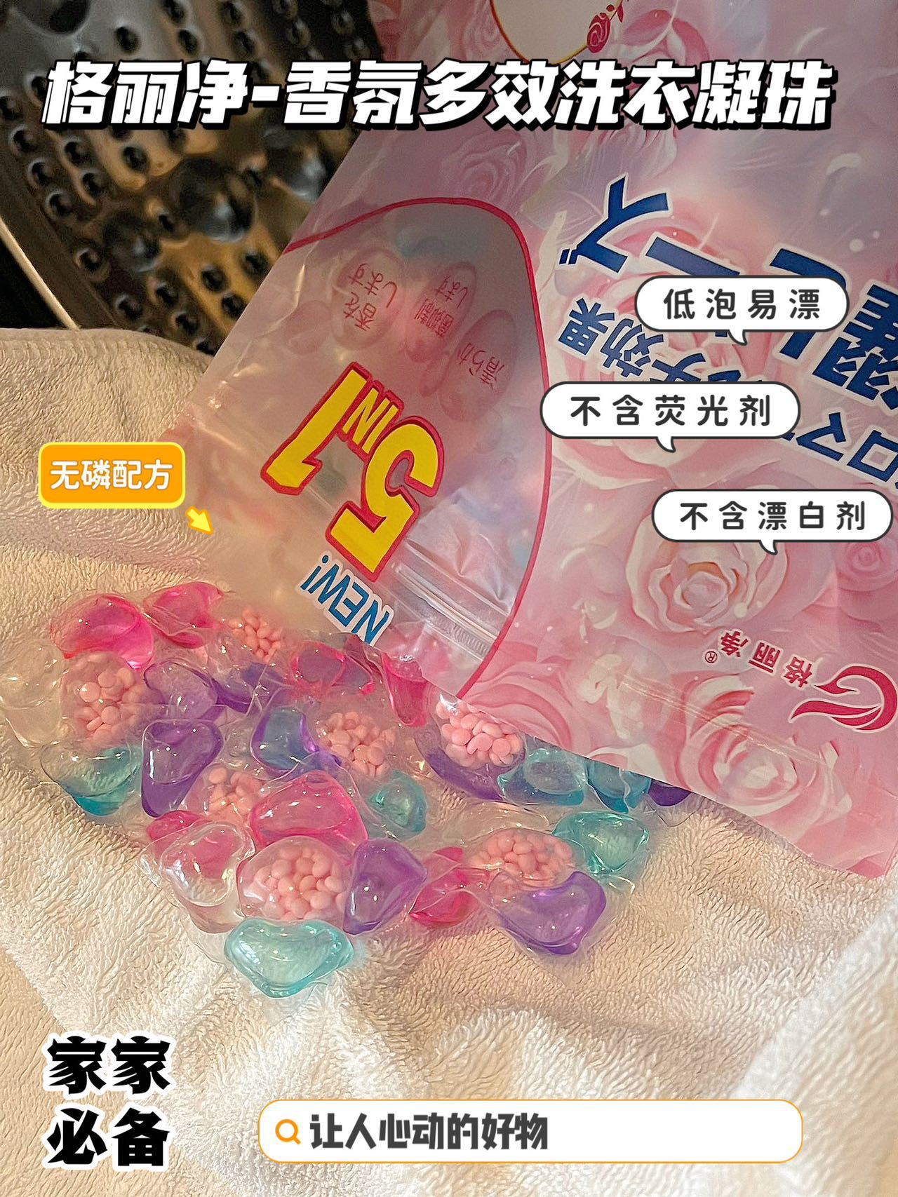 「限时送40颗1袋!五合一凝珠」格丽净香氛洗衣凝珠 留香珠五合一浓缩型洗衣液居家日用清洁工具