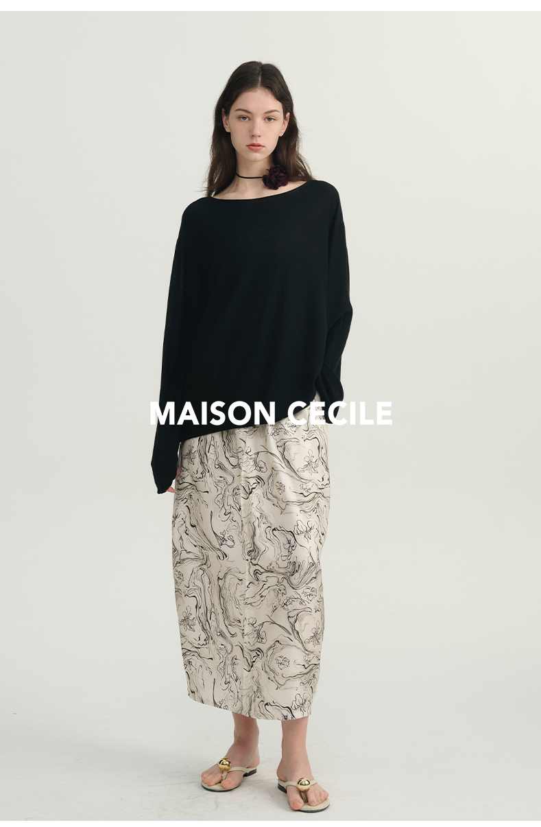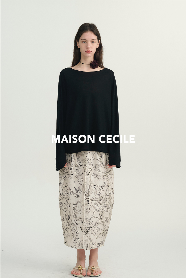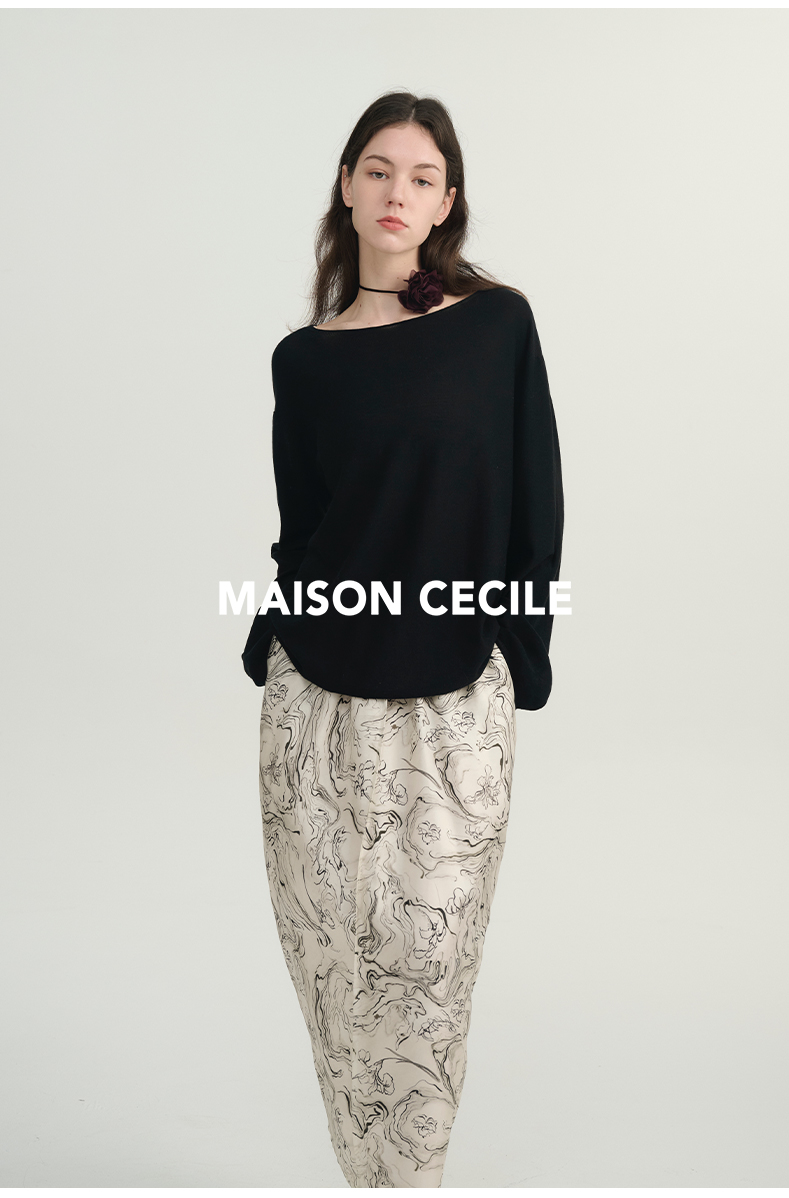 MAISON CECILE 两色|桑蚕丝羊绒亲肤软糯一字领修身针织打底衫