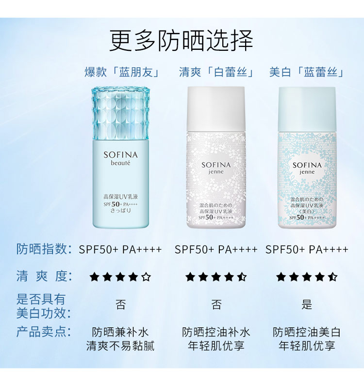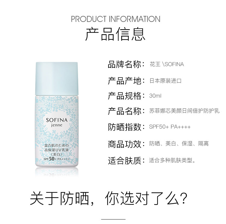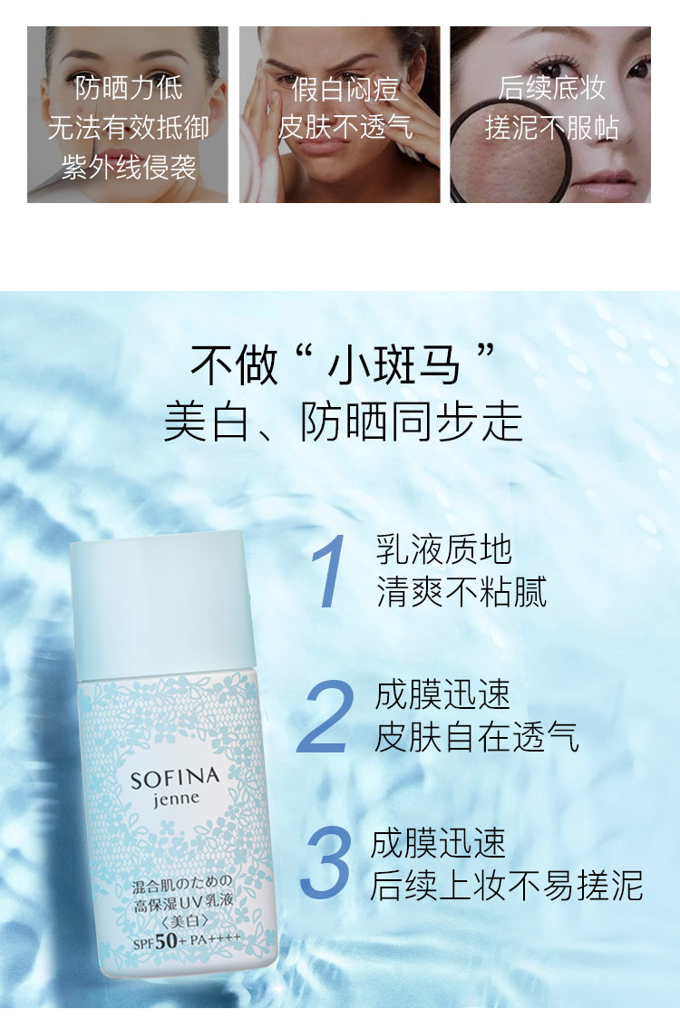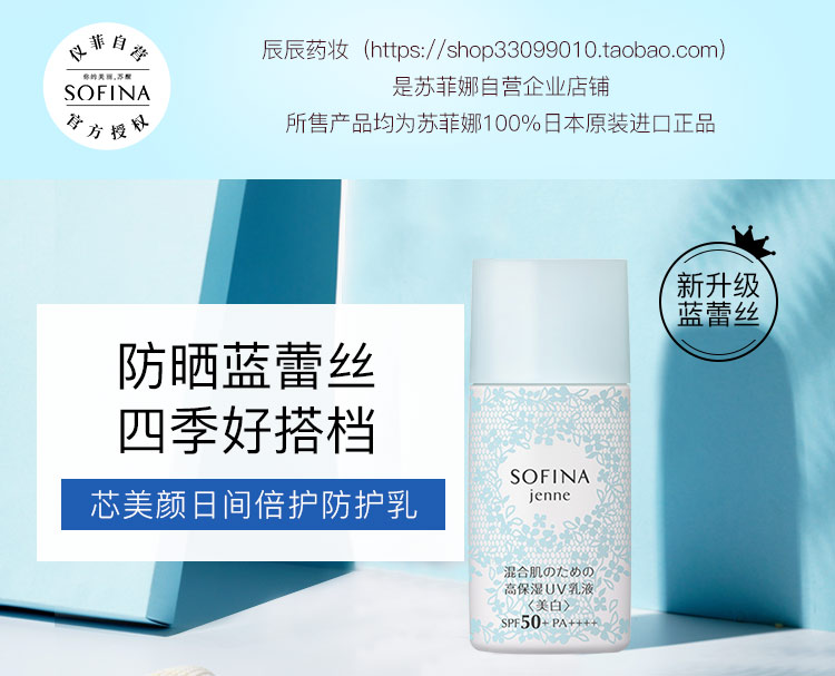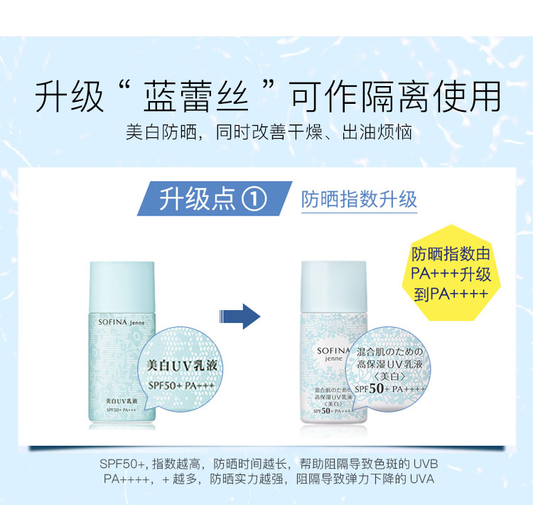 日版苏菲娜Sofina控油双效美白防护乳液隔离防晒霜女新蓝蕾丝学生JPY带授权招加盟代理