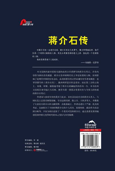 本书为西方的传记作家赖恩·克罗泽经典之作,被誉为第一部真正尊重历史与当事人的蒋介石传记,堪称当今世界经典的蒋介石传记版本,是西方蒋介石研究的高峰之作,以第三方的立场,“客观”、“犀利”、“敏锐”的观点,并配以大量披露的历史资料,全面、完整、深入地描绘了蒋介石波澜起伏、大是大非的一生。
