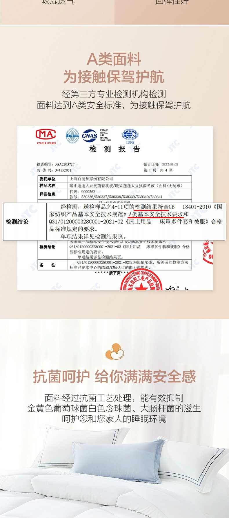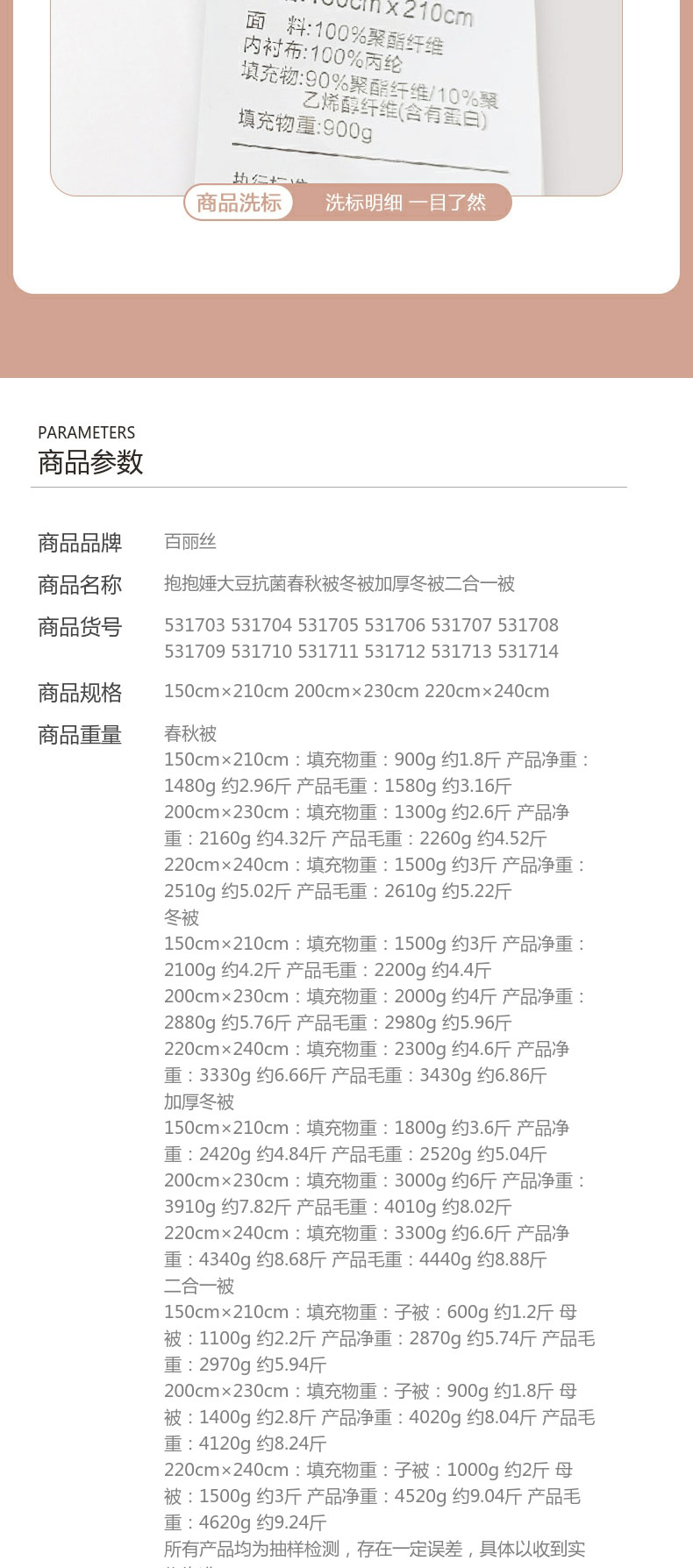 百丽丝家纺 大豆纤维亲肤抗菌春秋/冬被 轻盈保暖 水星集团出品
