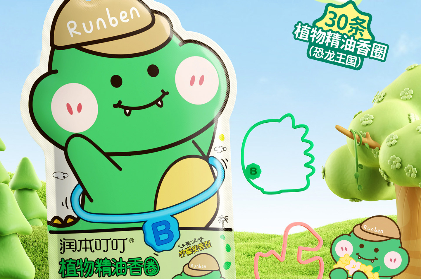 润本 叮叮植物精油香圈10条/袋(猫爪/恐龙)