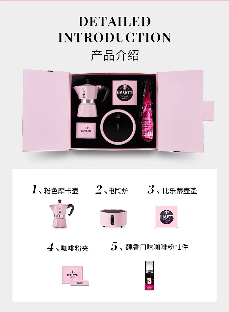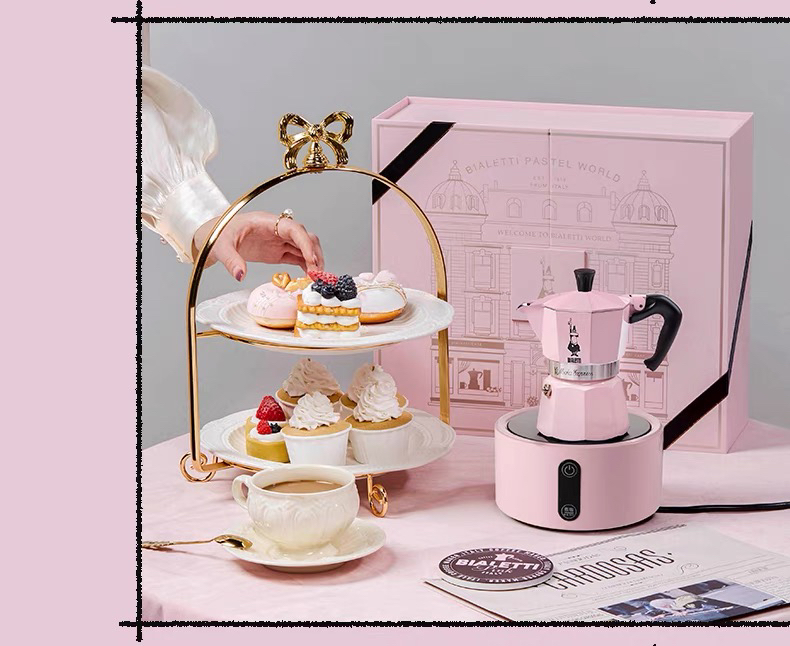 比乐蒂异想世界礼盒粉色摩卡壶礼盒手冲咖啡套装
