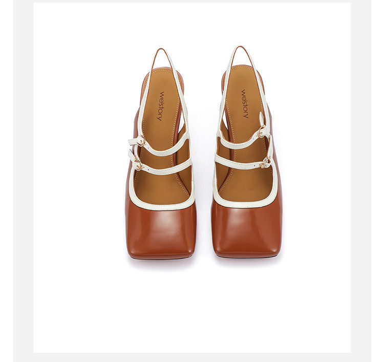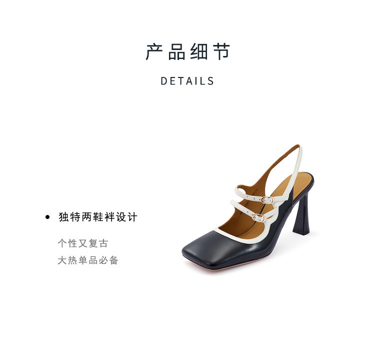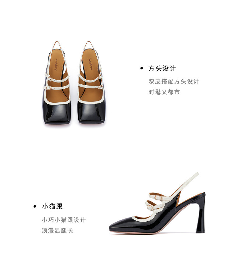 westory2023年夏季新款细高跟优雅通勤方头牛皮空鞋女羊皮内里内垫73001