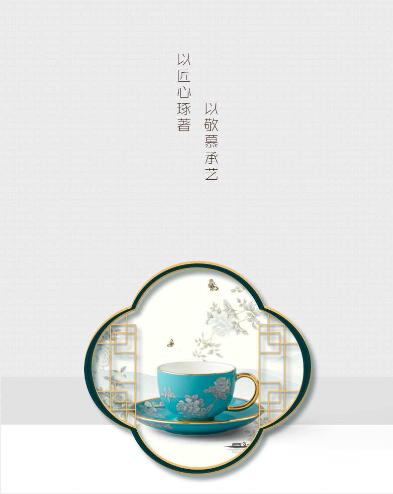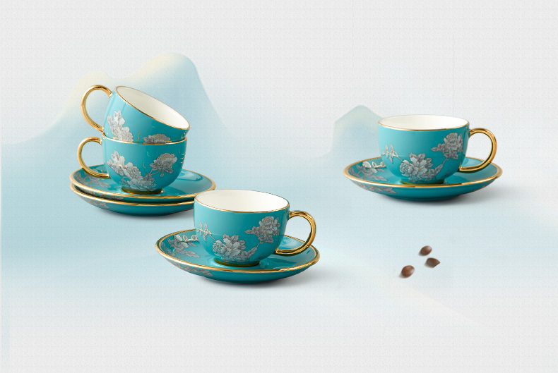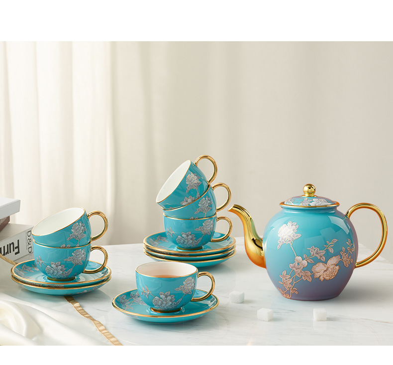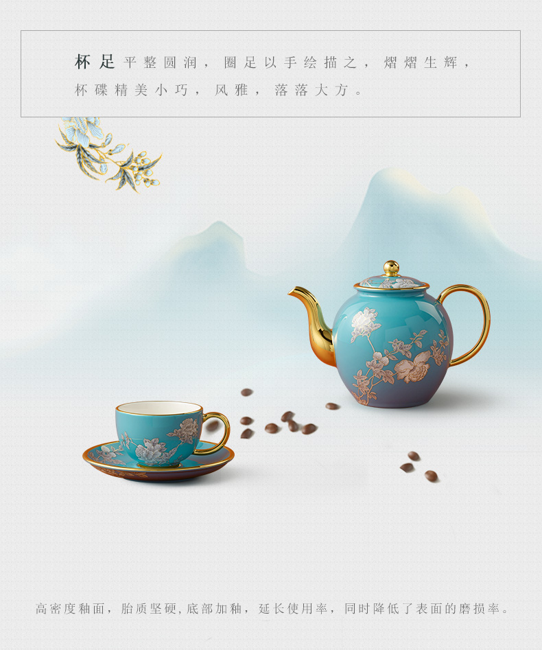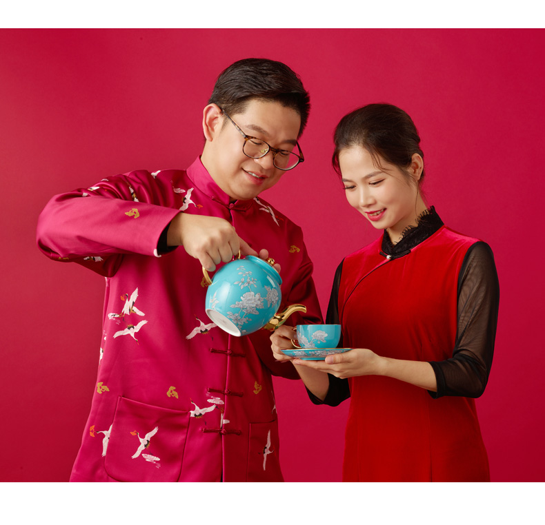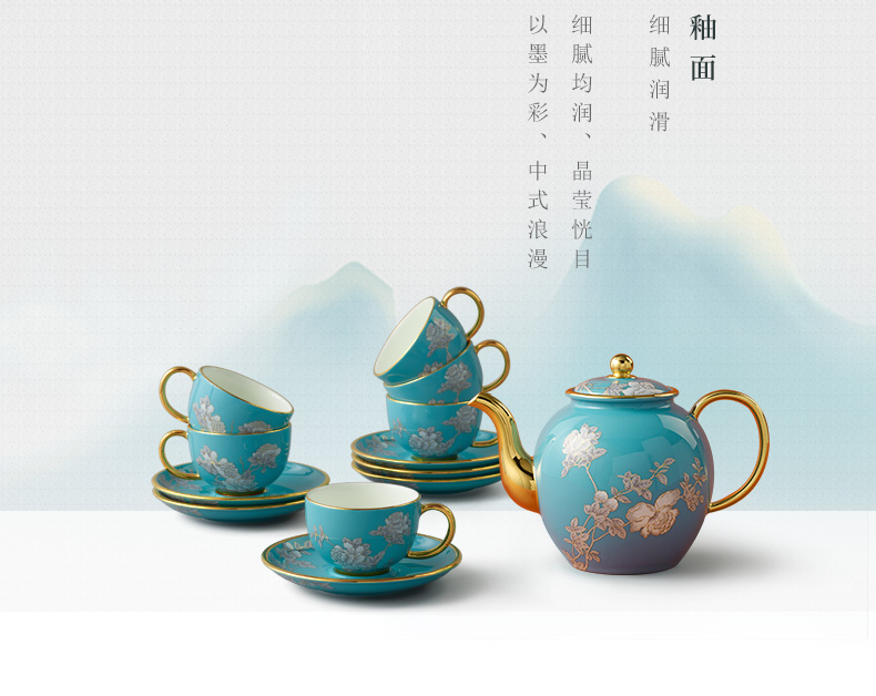 【国瓷·永丰源】夫人瓷水墨牡丹14头陶瓷茶咖具杯碟套装大容量茶具套装家用