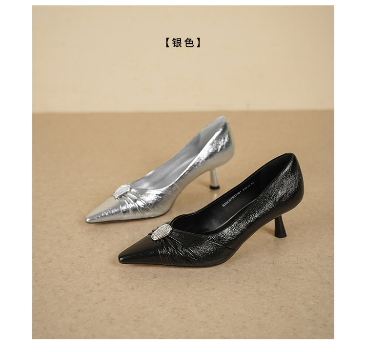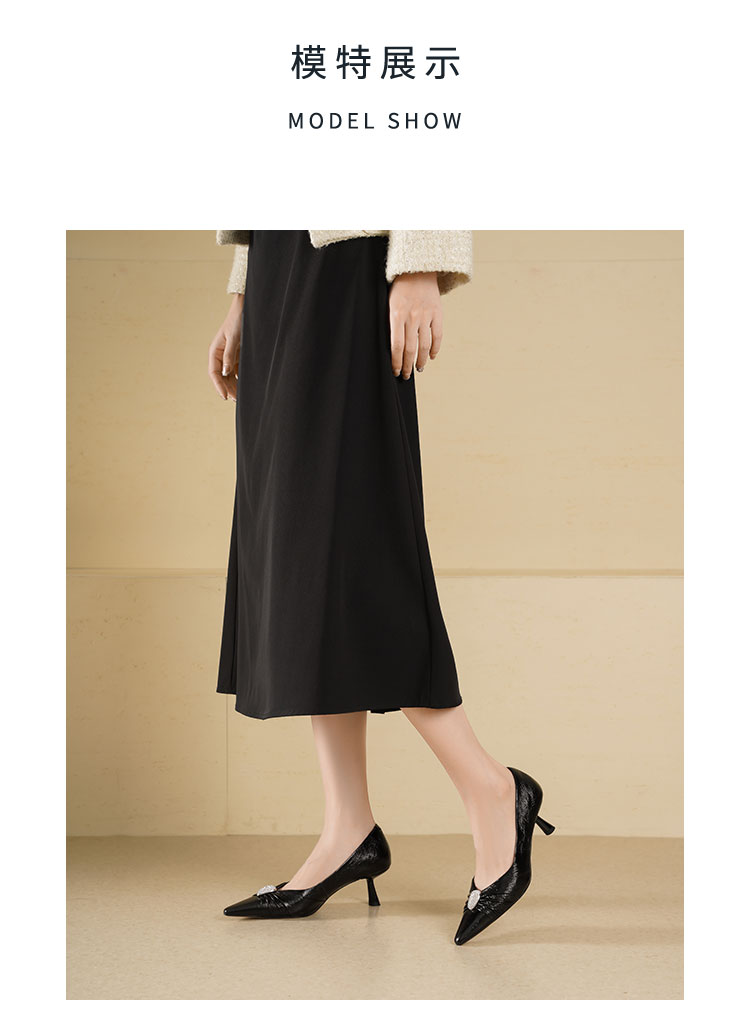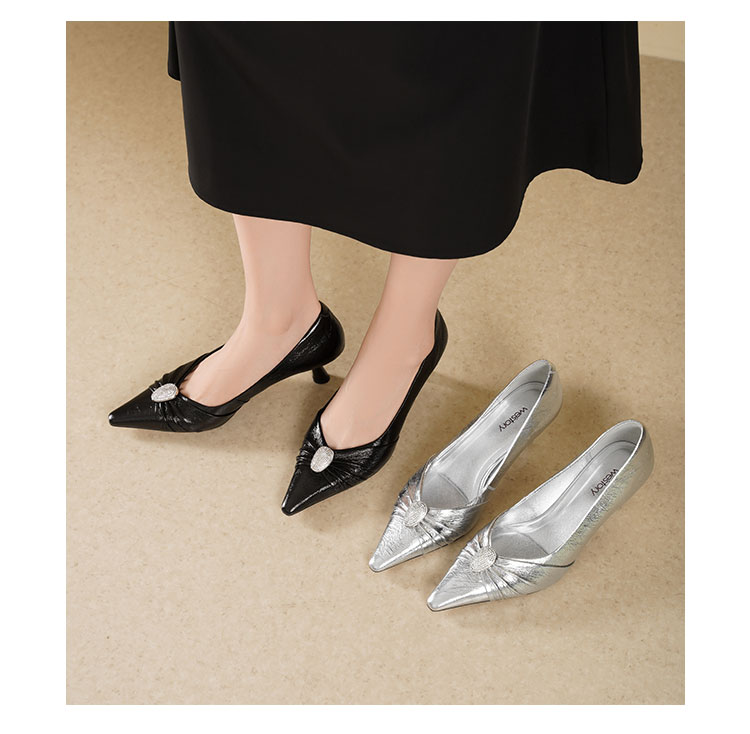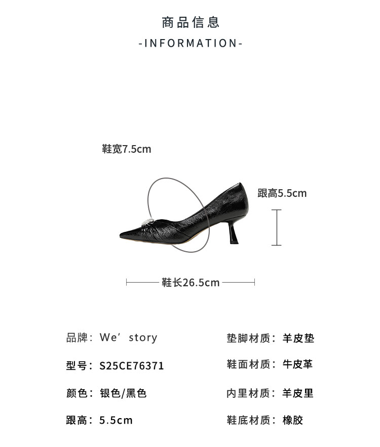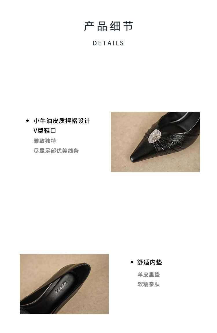 Westory2025年秋季尖头高跟捏褶设计V口通勤百搭浅口单鞋S25CE76371