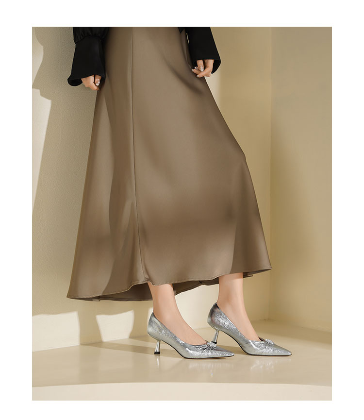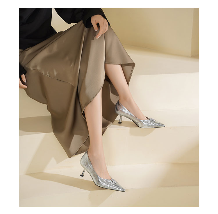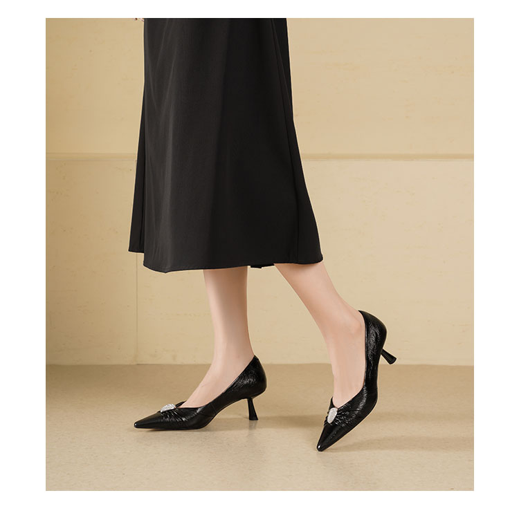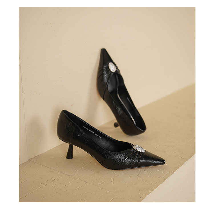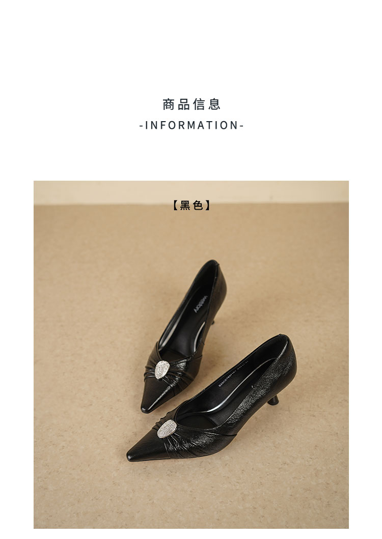 Westory2025年秋季尖头高跟捏褶设计V口通勤百搭浅口单鞋S25CE76371