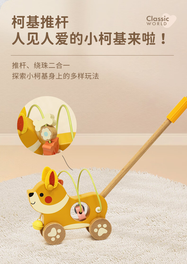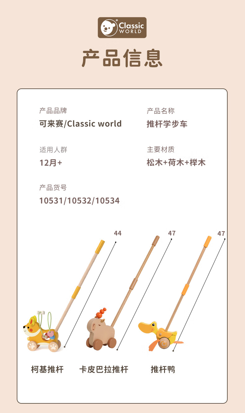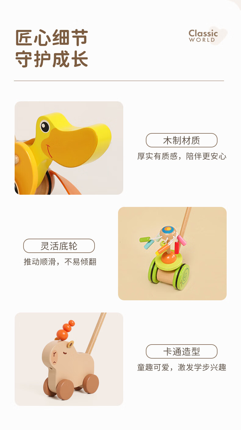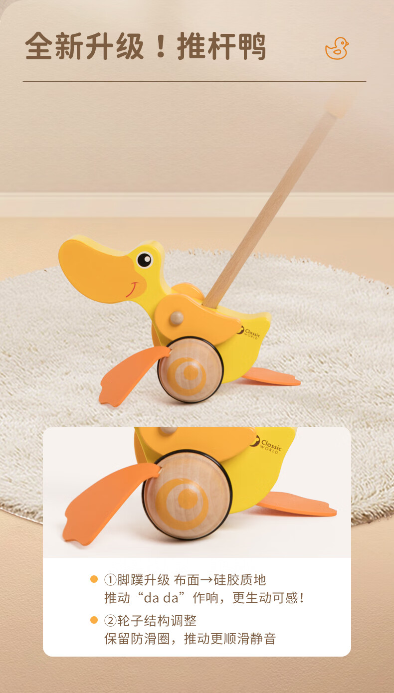 可来赛(Classic world)新款推杆鸭木制宝宝推车儿童助步推杆婴幼儿早教玩具生日礼物学步