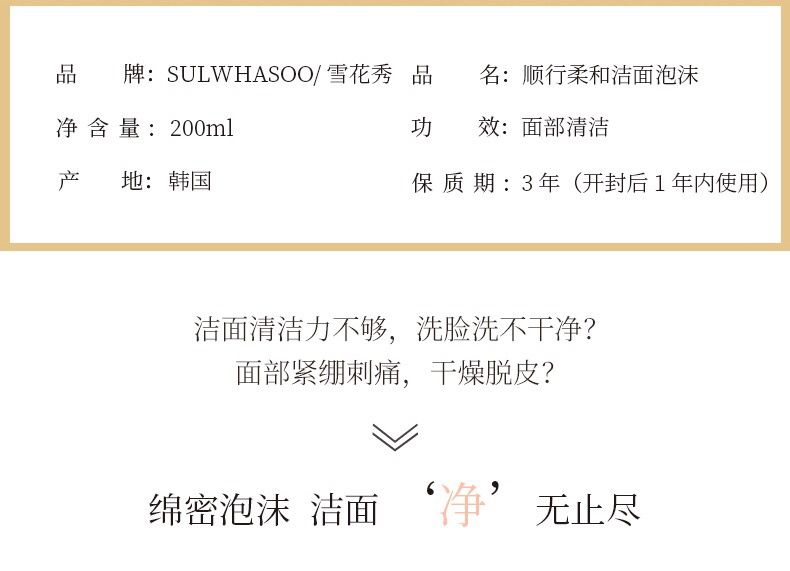 【海关保税直发】Sulwhasoo雪花秀顺行洗面奶-柔和洁面草本氨基酸-会员5折