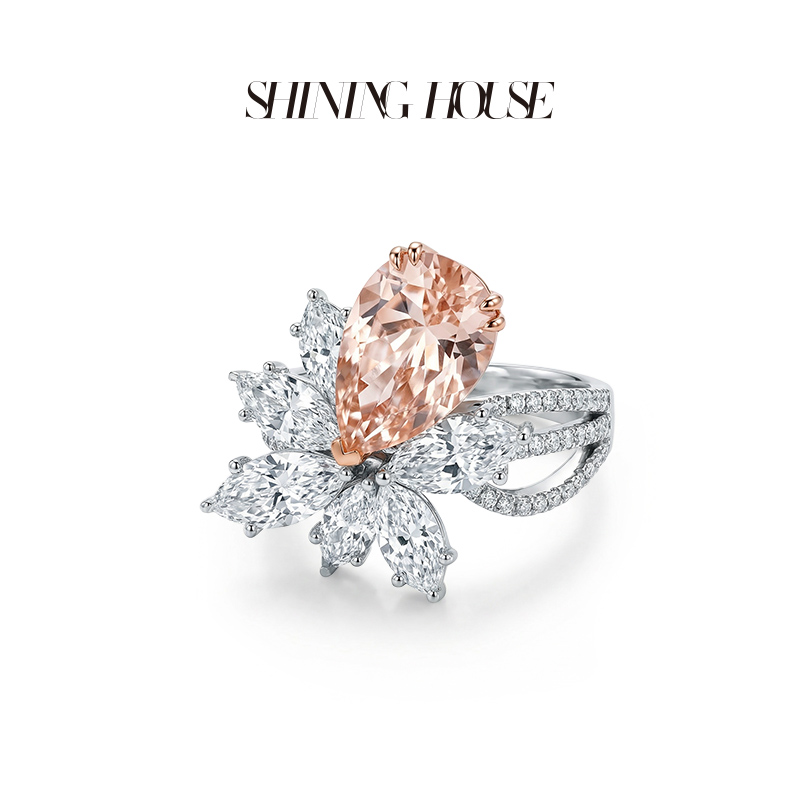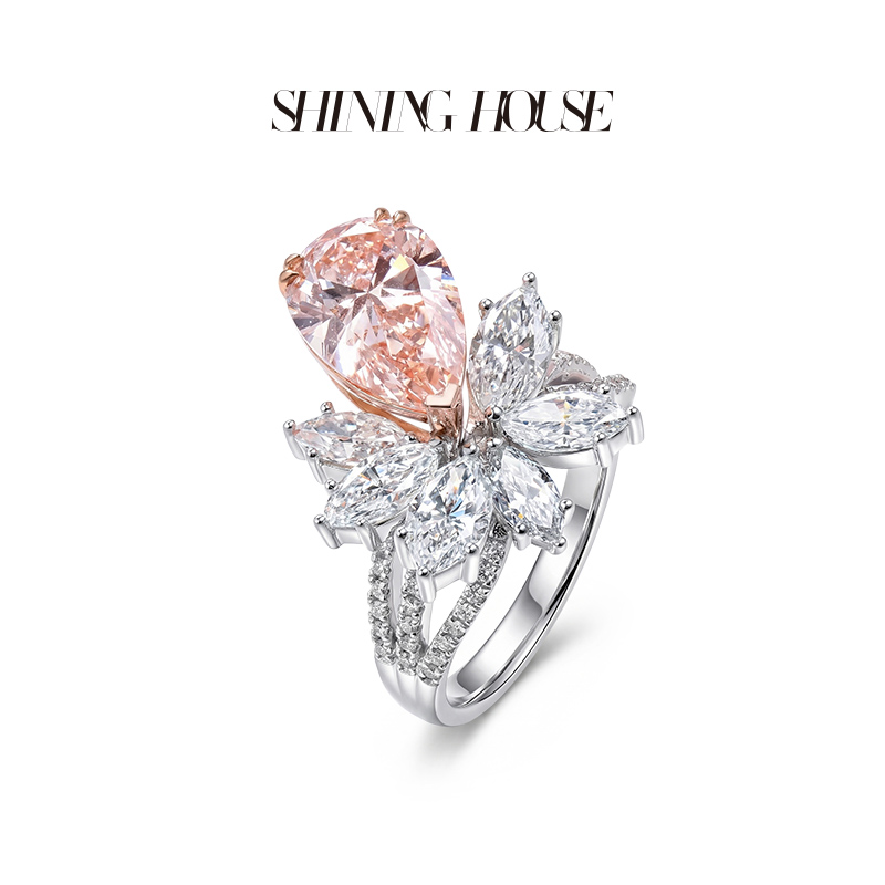 ShiningHouse[培育] 粉钻系列 18k金钻石戒指 梨形3克拉钻人工真钻人造钻石K金戒指时尚钻石戒指卓越匠心奢耀臻献【此商品不支持7天无理由退货退款】